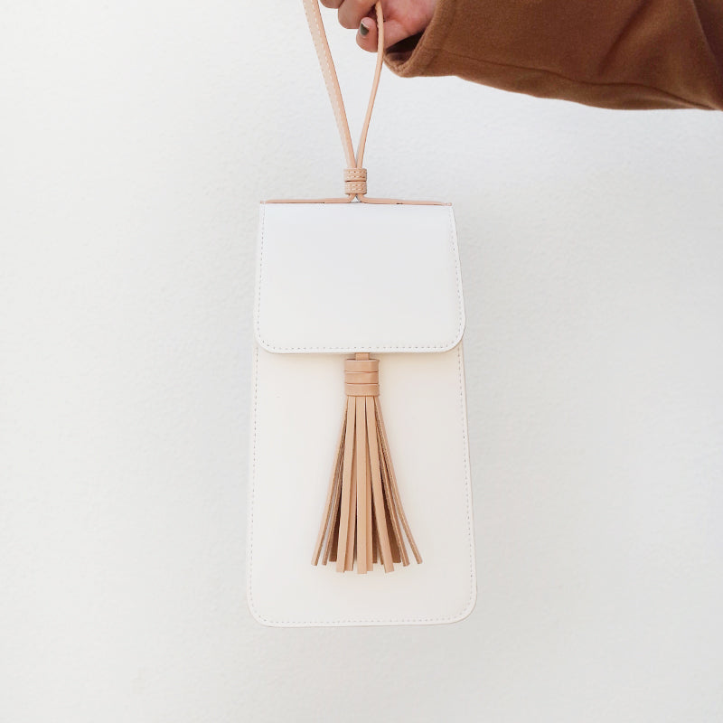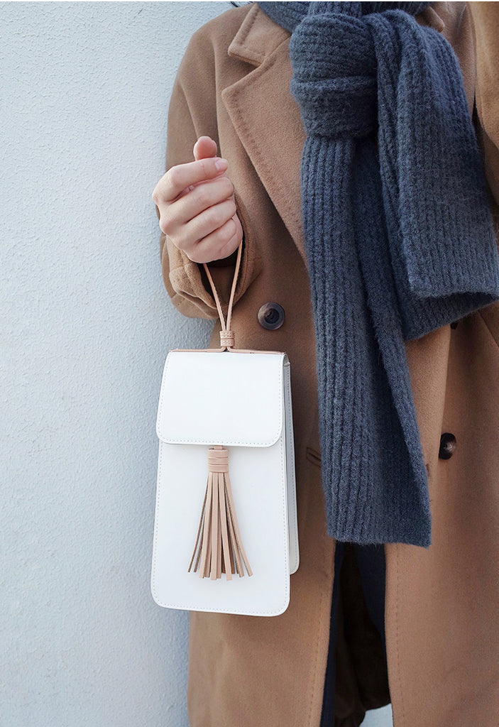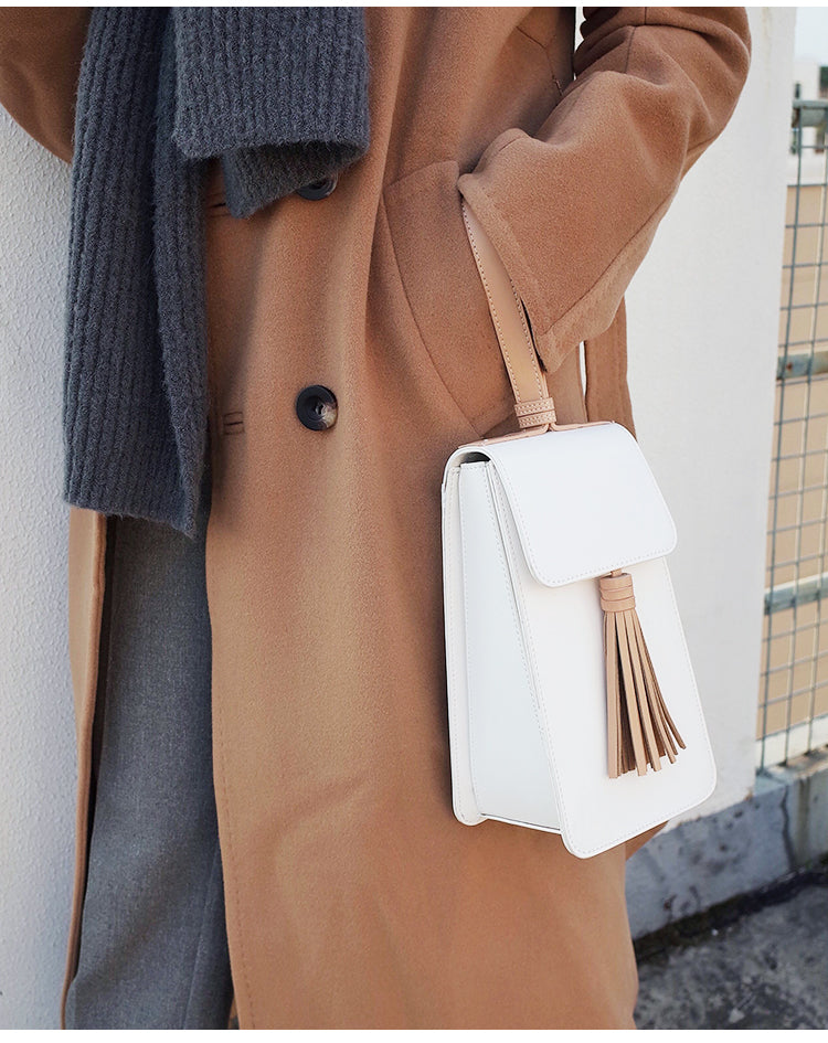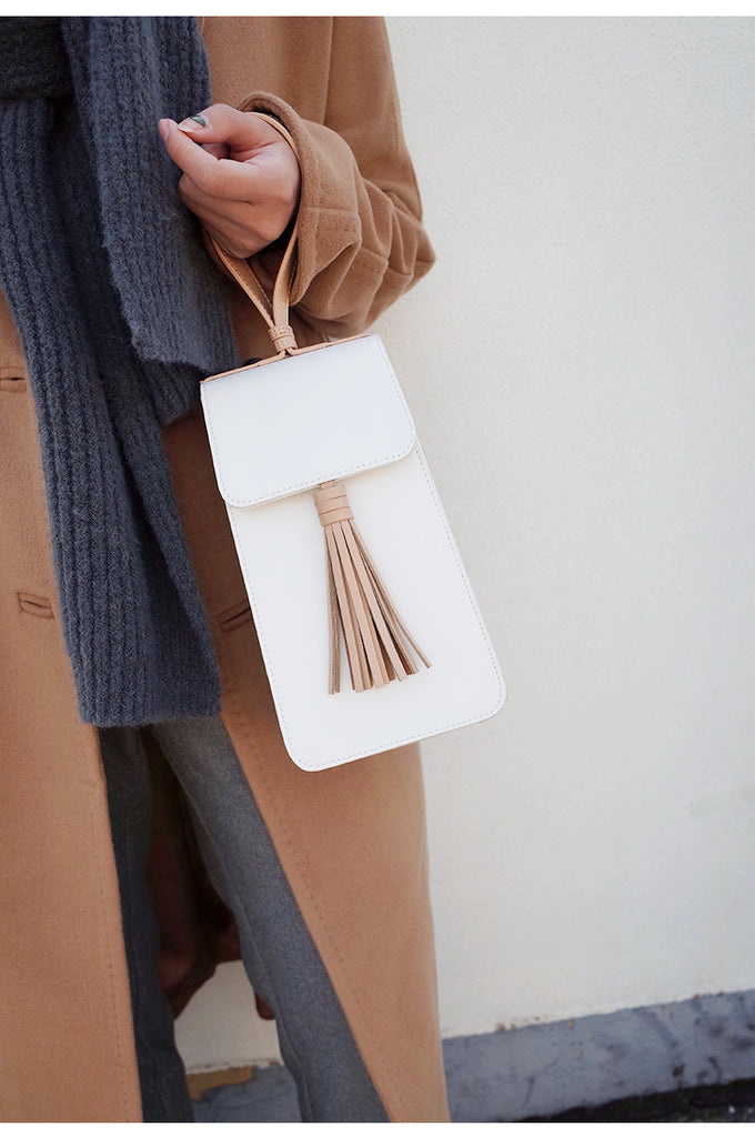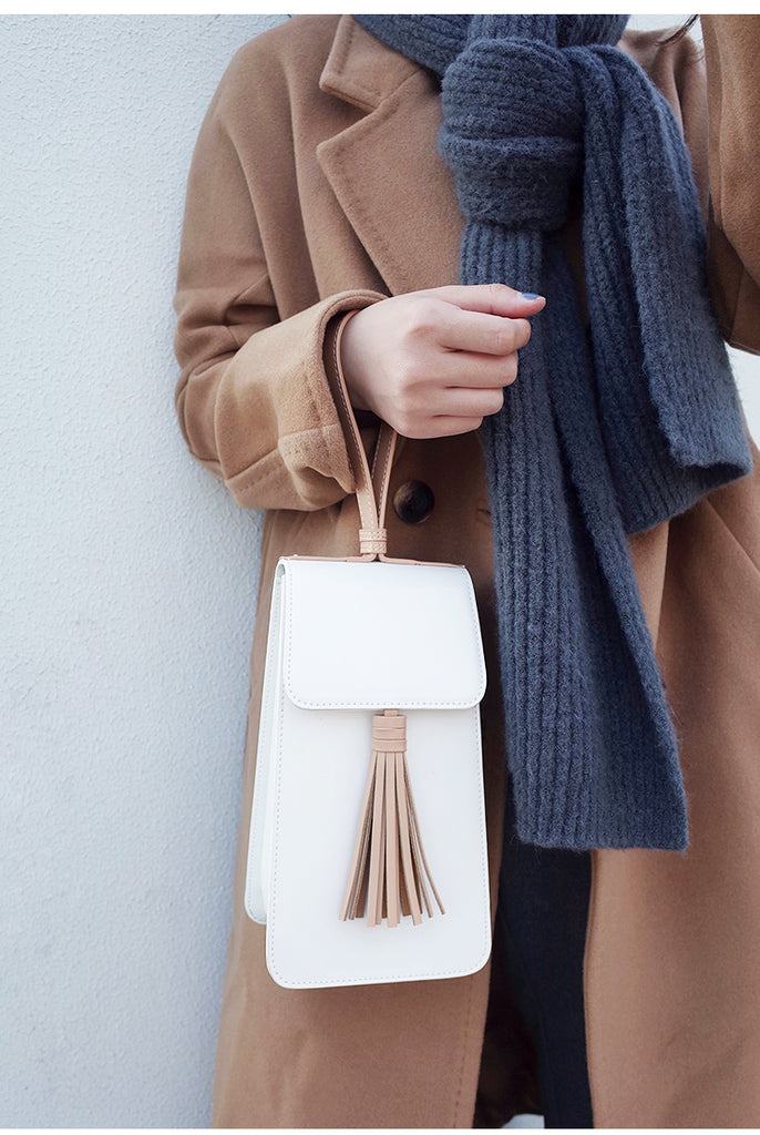 Style: Stylish White Leather Womens Handbag Tassel Wristlet Bag for Women