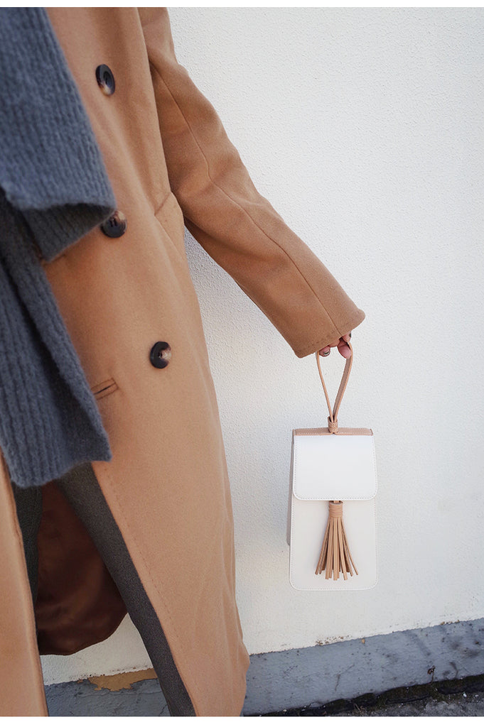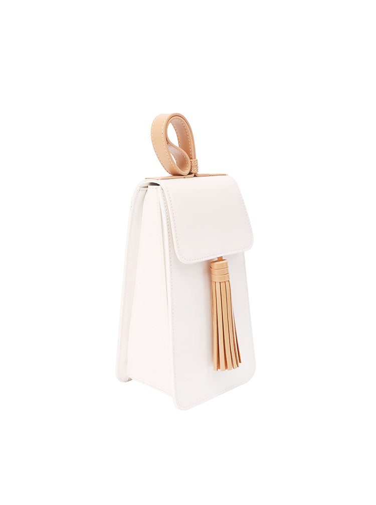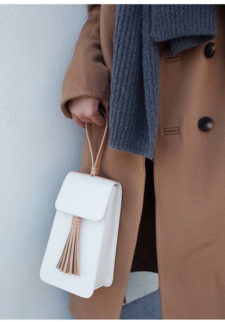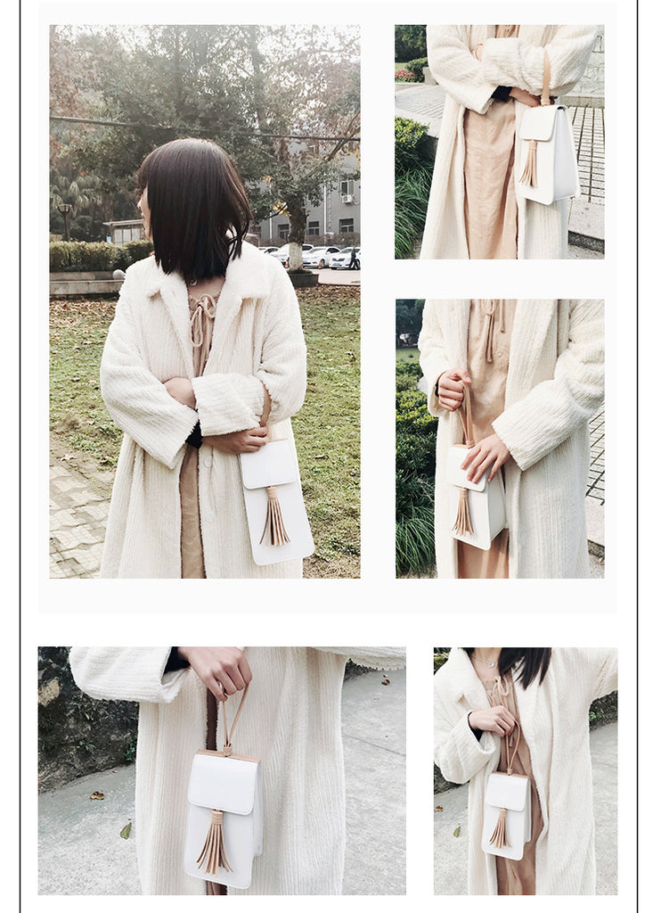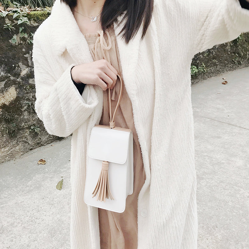 Style: Stylish White Leather Womens Handbag Tassel Wristlet Bag for Women