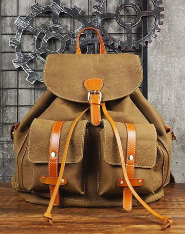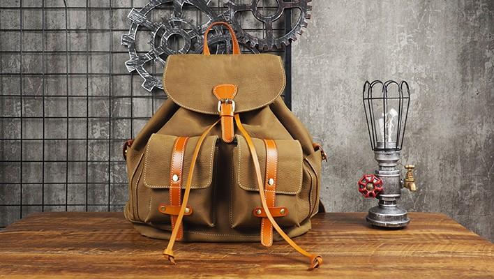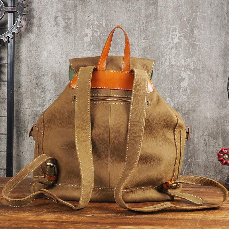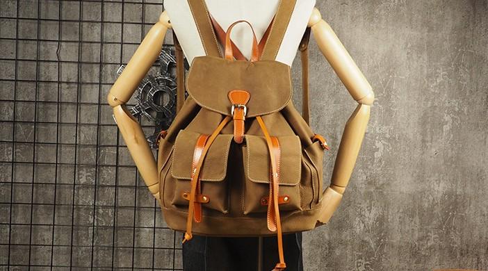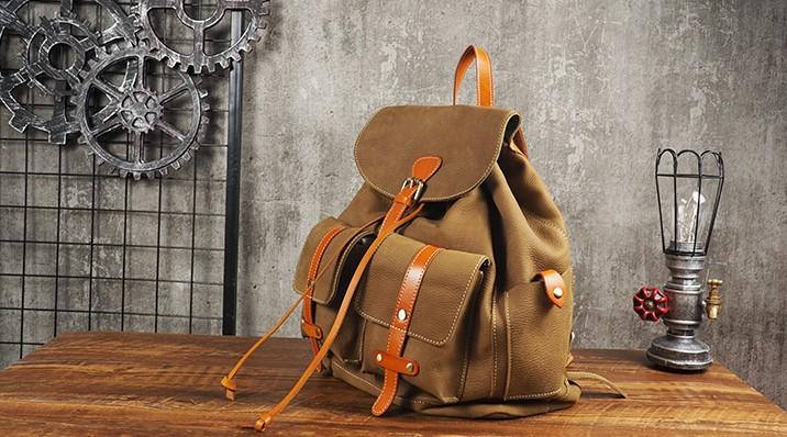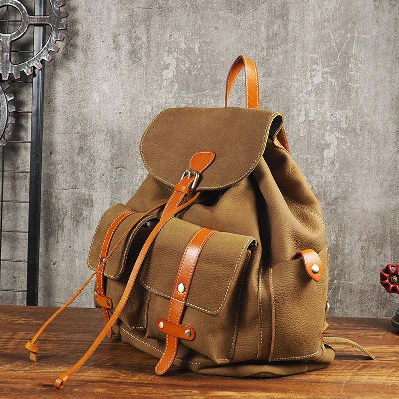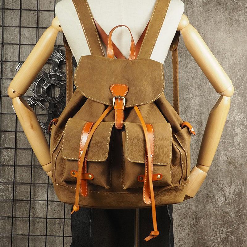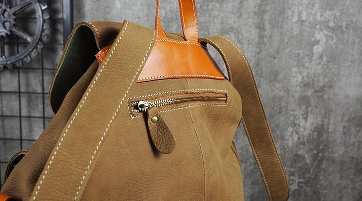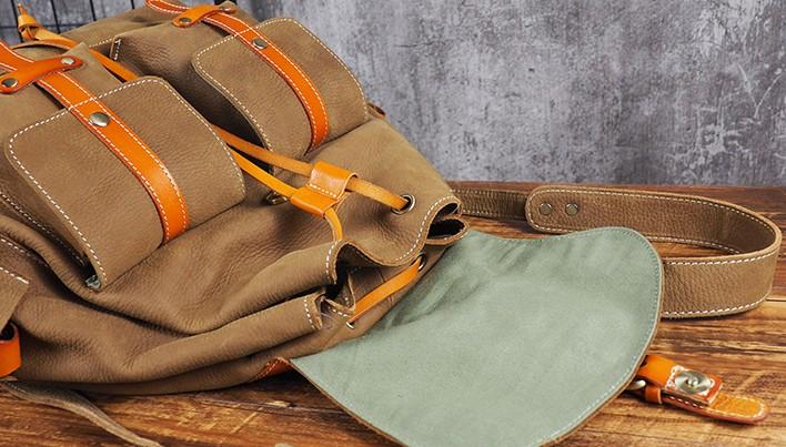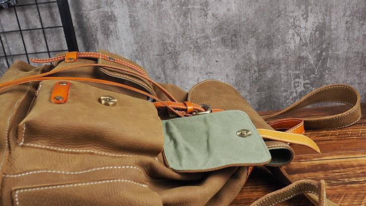 Design: Tan Cool Mens Leather Backpack Travel Backpack Leather Hiking Backpack for Men