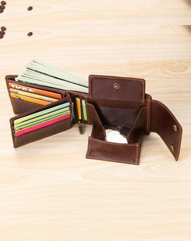 Design: Cool Brown Leather Men's Trifold Small Wallet Multi-cards billfold Wallet For Men