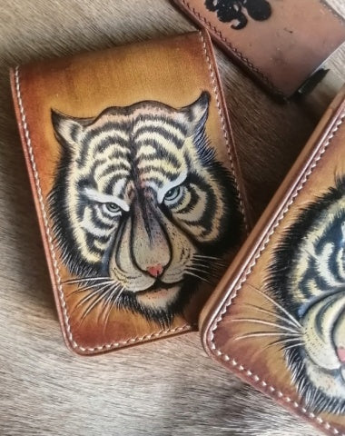 Style: Tiger Tooled Leather Wallet Card Wallet with ID Window Tiger ID Holder Wallet Mens Wallet with ID Window