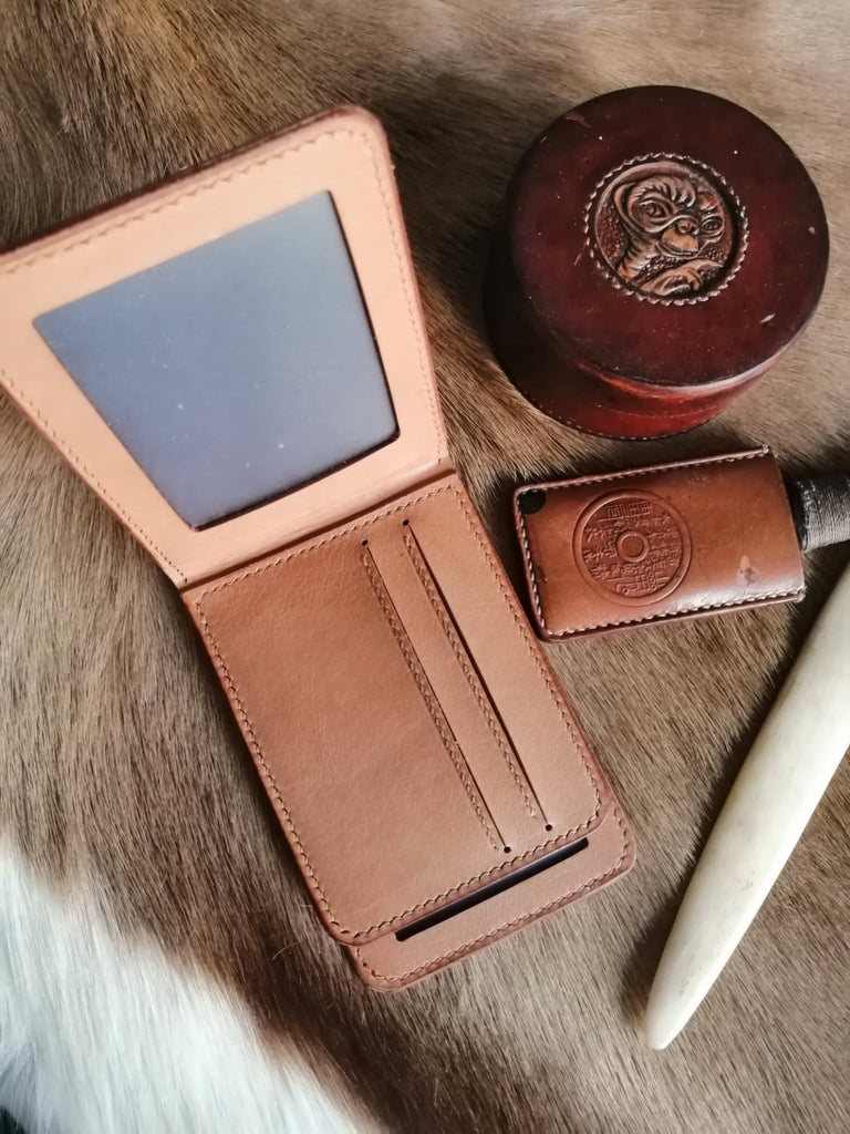 Style: Tiger Tooled Leather Wallet Card Wallet with ID Window Tiger ID Holder Wallet Mens Wallet with ID Window