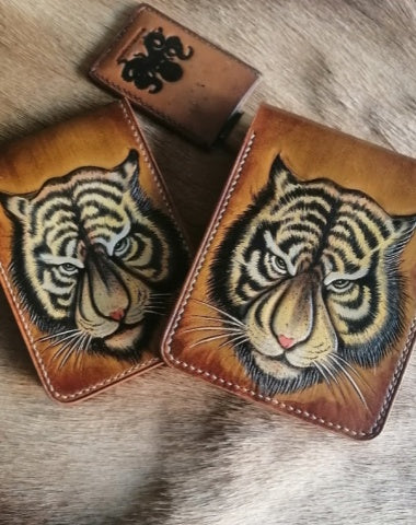 Design: Tiger Tooled Leather Wallet Card Wallet with ID Window Tiger ID Holder Wallet Mens Wallet with ID Window