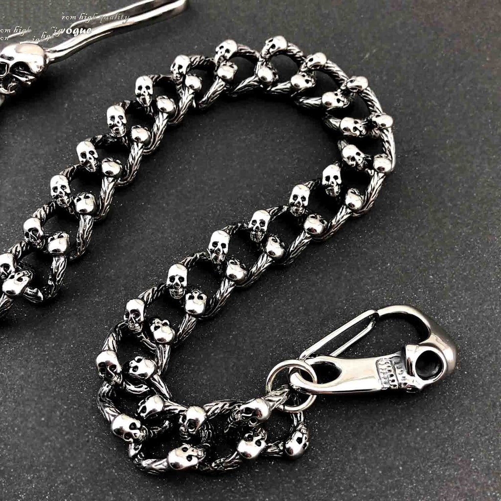 Design: Badass Skull STAINLESS STEEL Mens Wallet Chain Biker Wallet Chain Pants Chain For Men