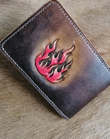 Tooled Leather Wallet Fire Card Wallet with ID Window Flame ID Holder Wallet Mens Wallet with ID Window