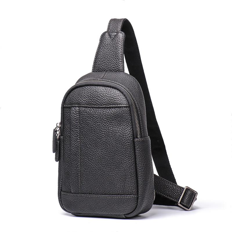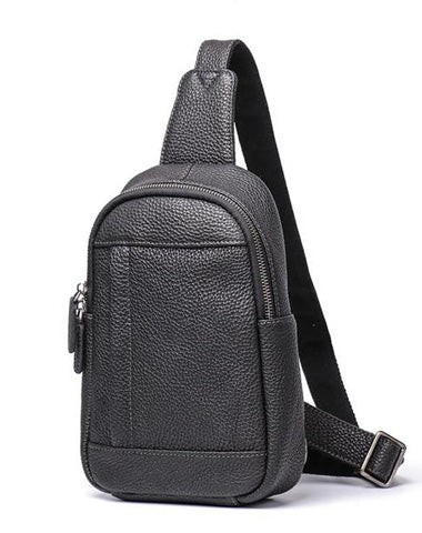 Style: Trendy Black Leather Men's Sling Bag Chest Bag Brown Sling Crossbody Bag One Shoulder Backpack For Men