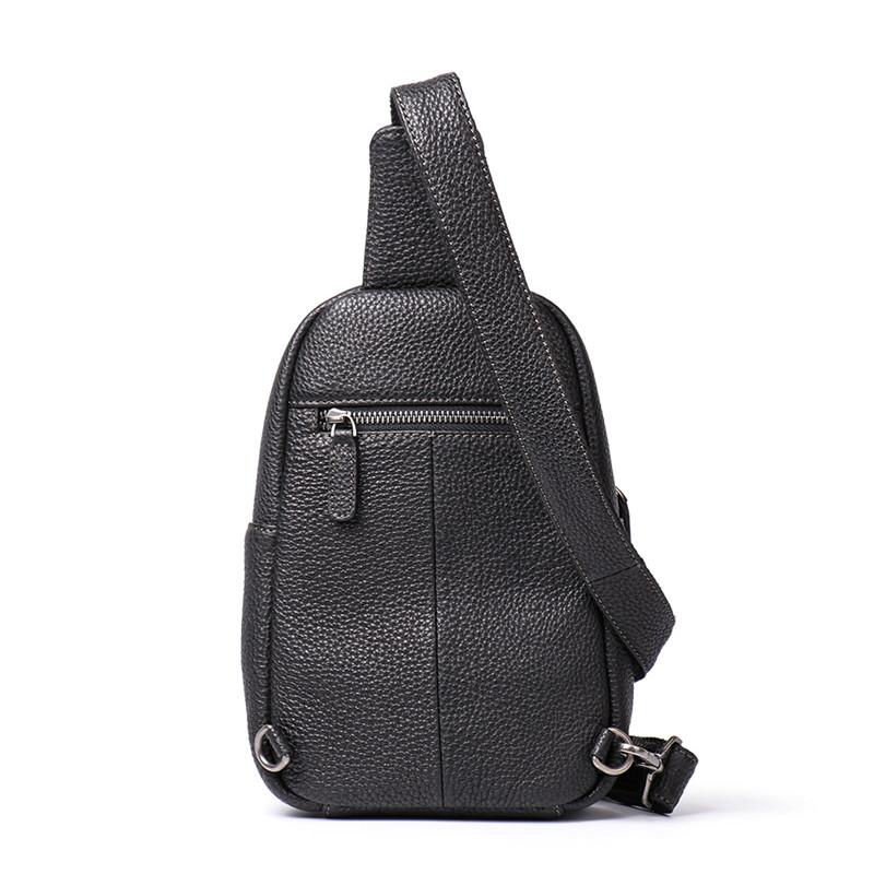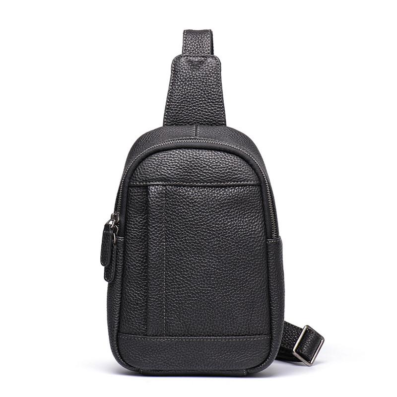 Design: Trendy Black Leather Men's Sling Bag Chest Bag Brown Sling Crossbody Bag One Shoulder Backpack For Men