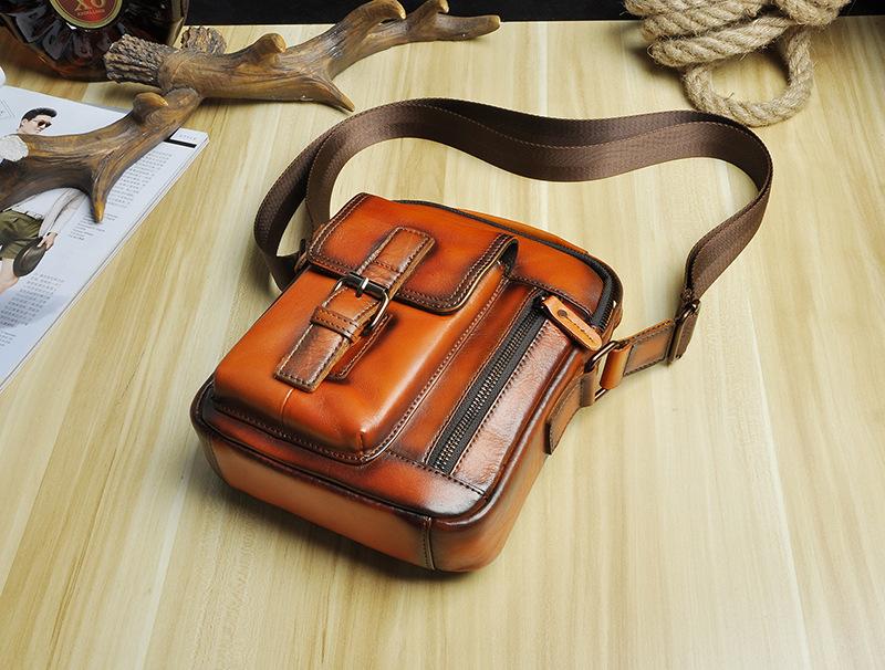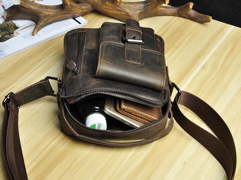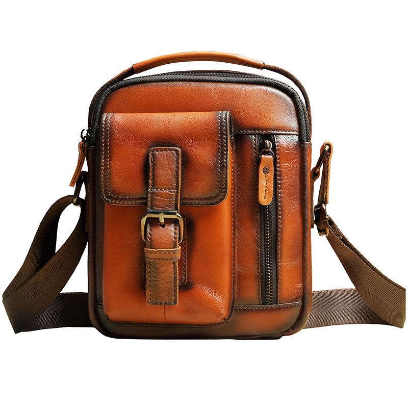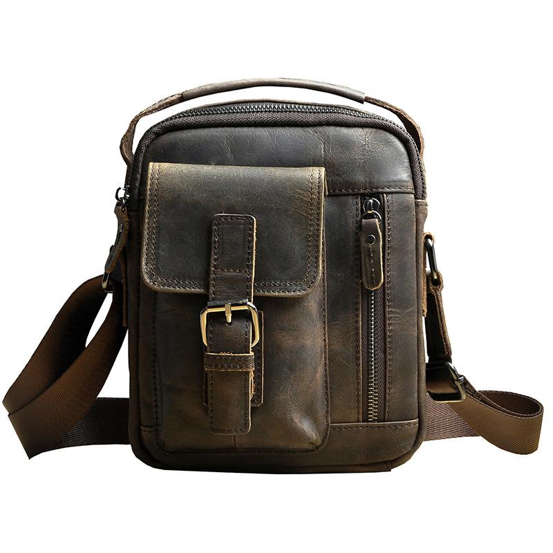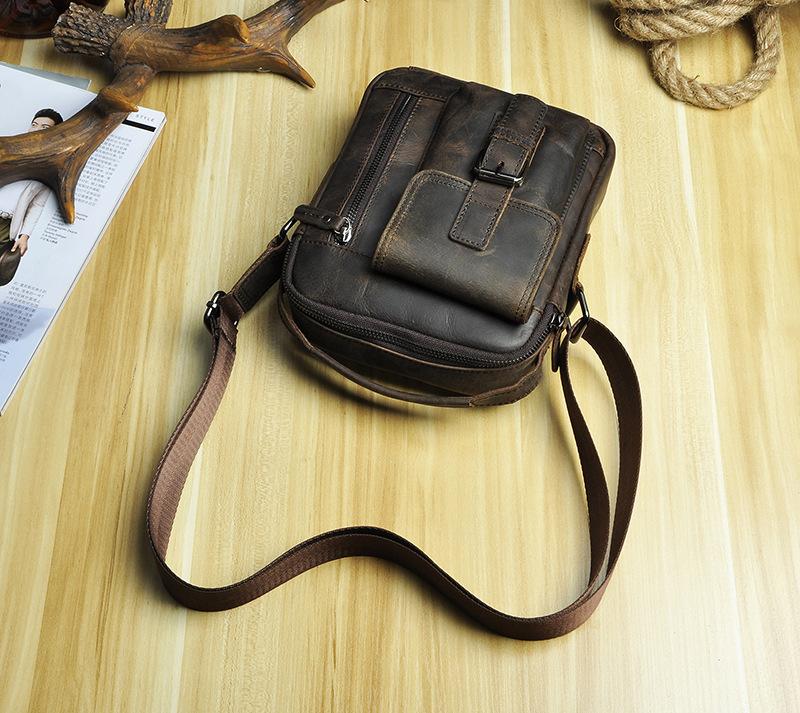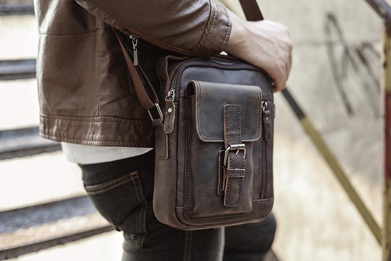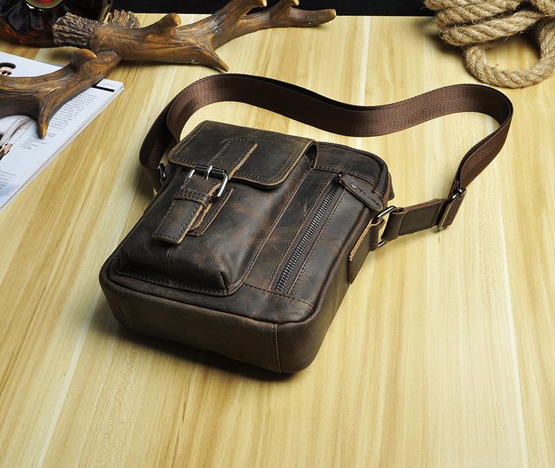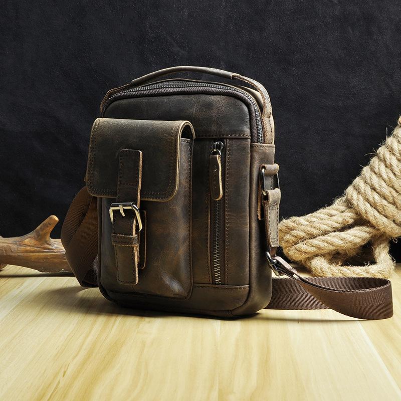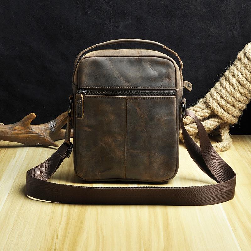 Design: Fashion Brown Leather Mens Small Vertical Side Bag Messenger Bag Tablet Bag For Men