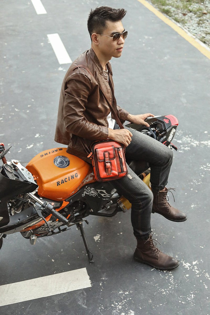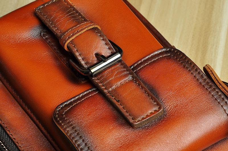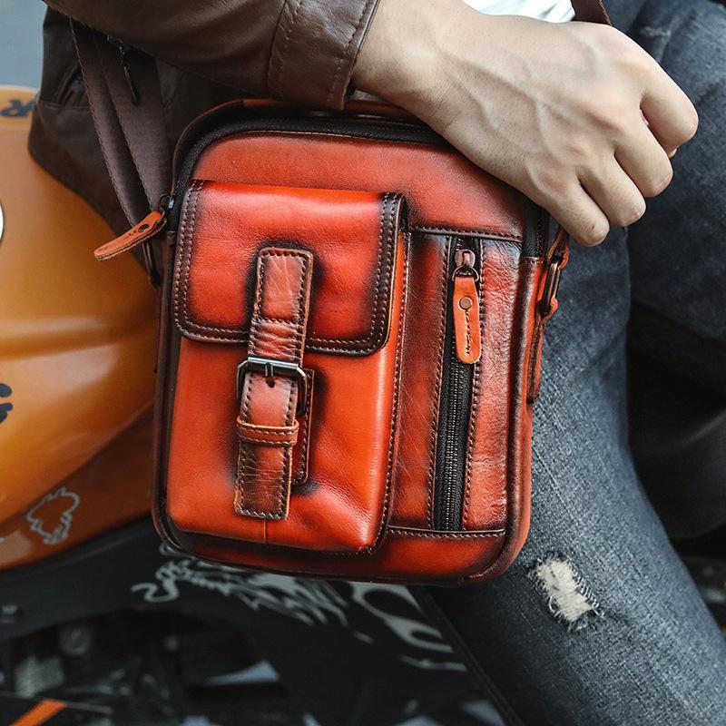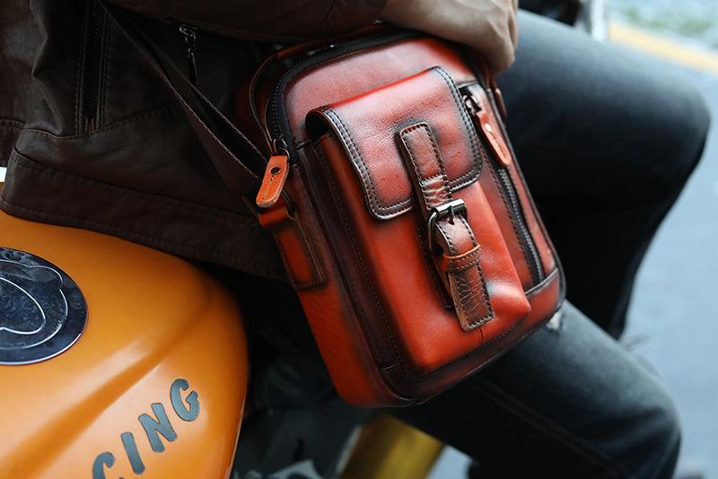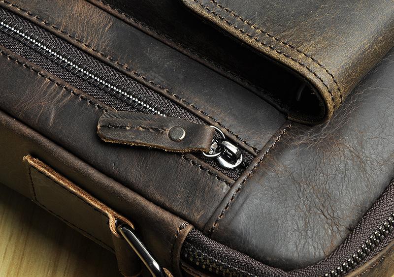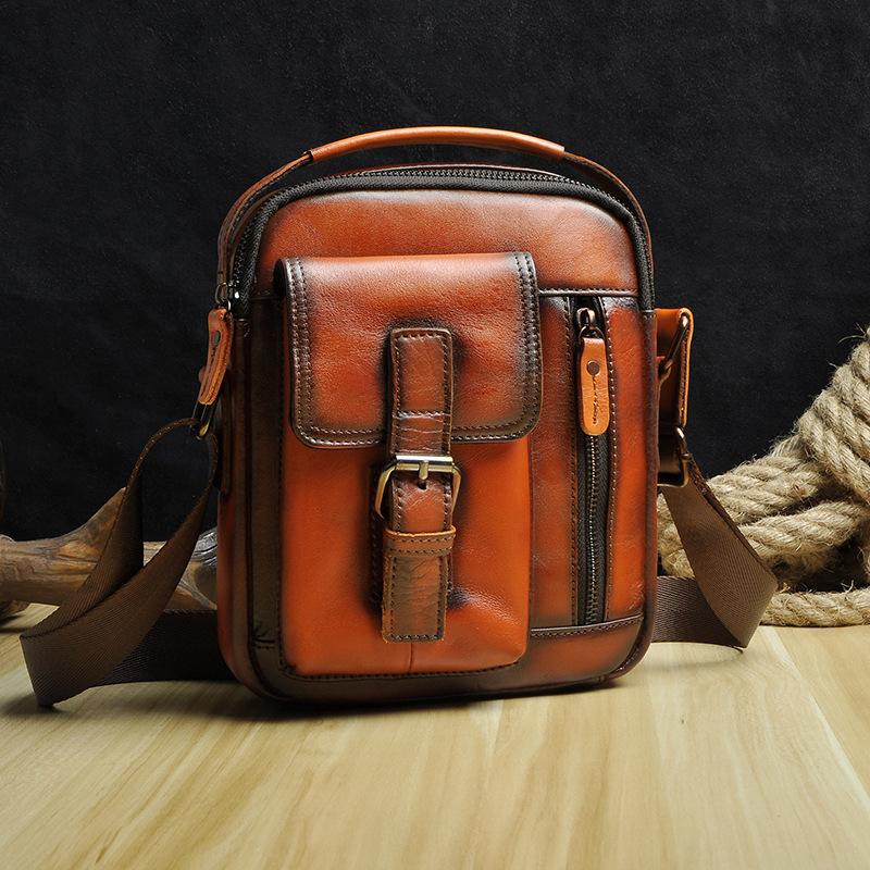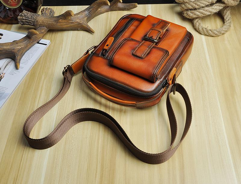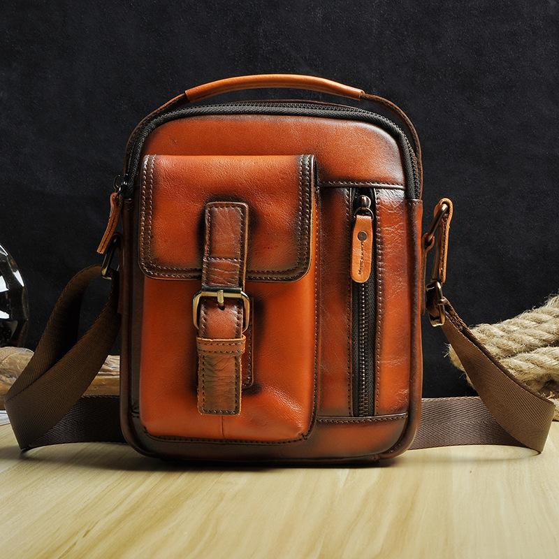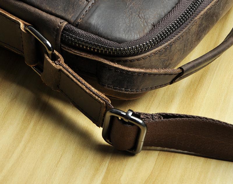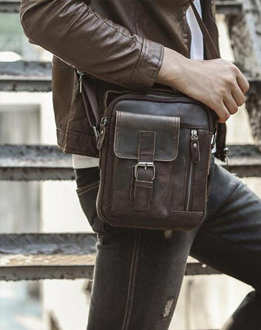 Design: Fashion Brown Leather Mens Small Vertical Side Bag Messenger Bag Tablet Bag For Men
