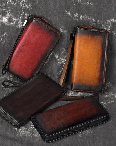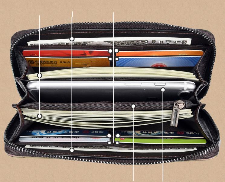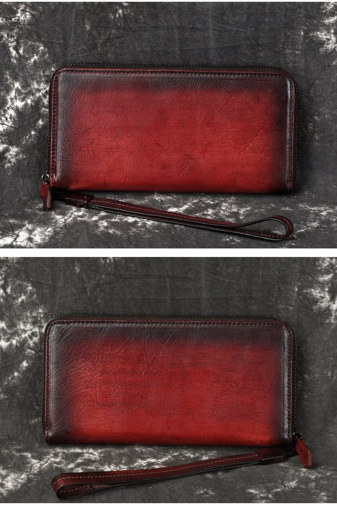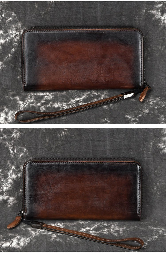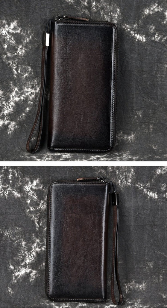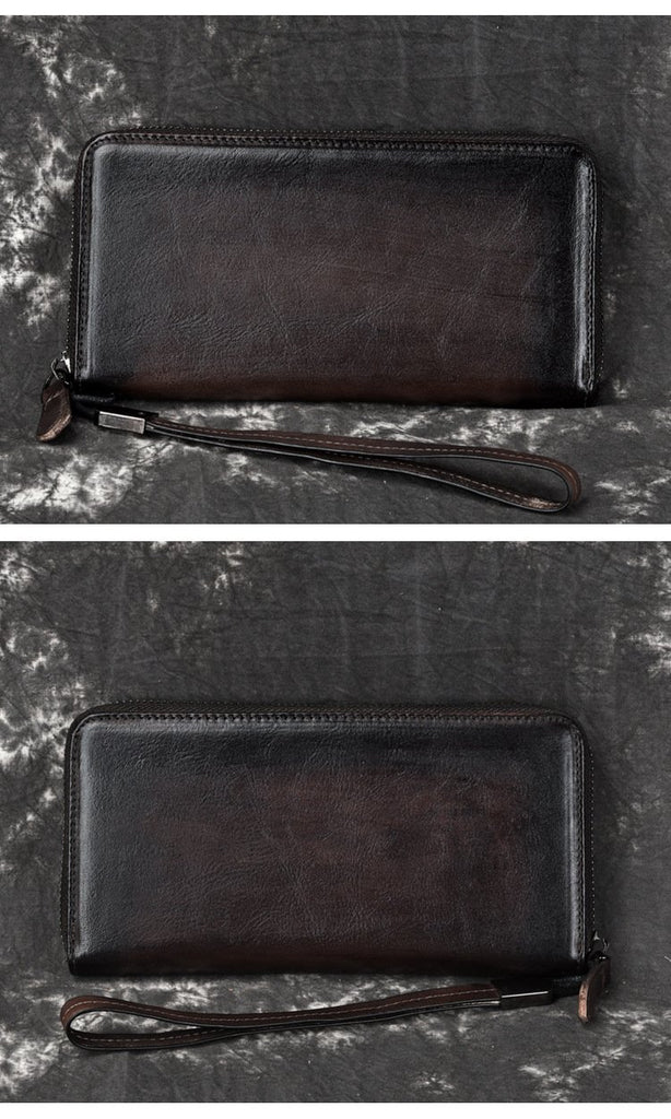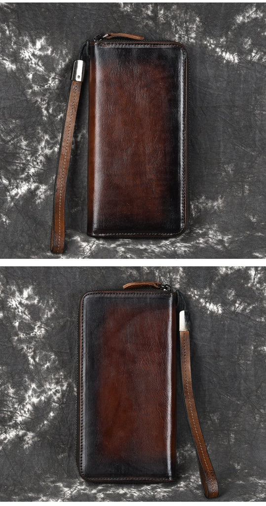 Style: Handmade Leather Men's Zipper Long Wallet Clutch Wallet Wristlet Wallet For Men