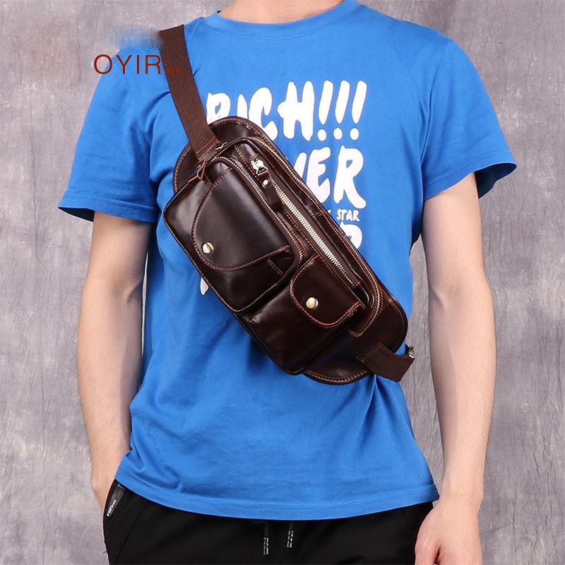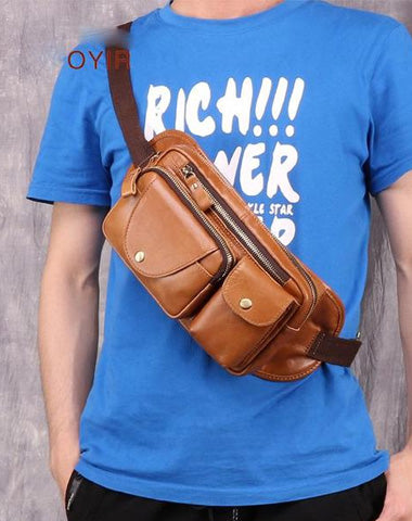 Design: Vintage Brown Leather Men's Fanny Pack Hip Pack Chest Bag Sling Crossbody Bag For Men