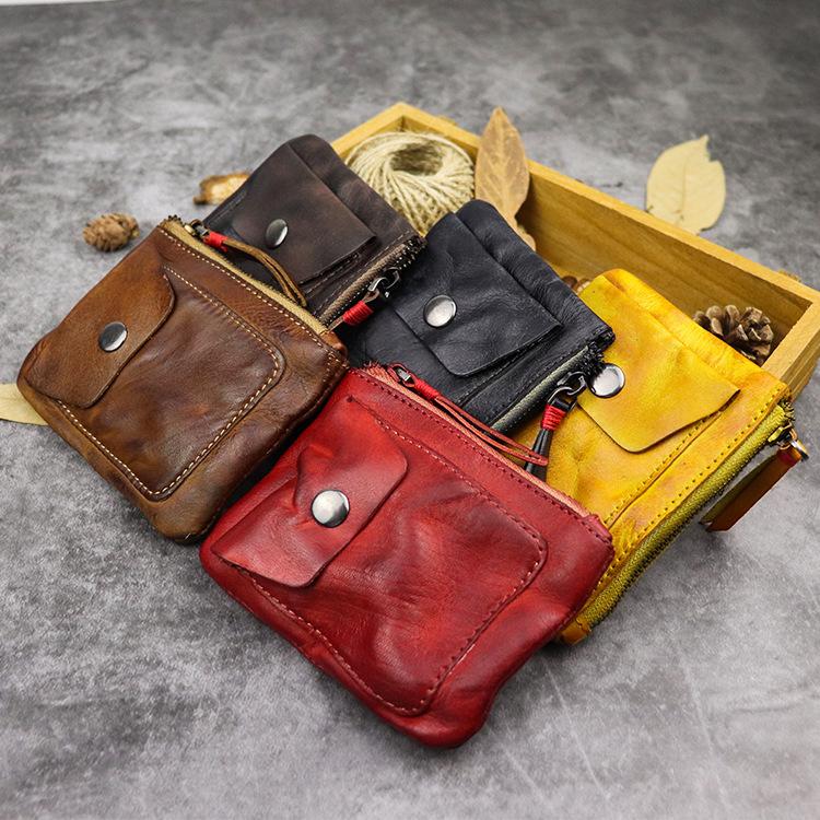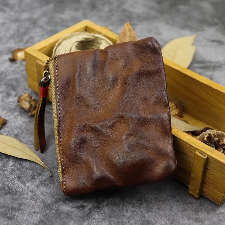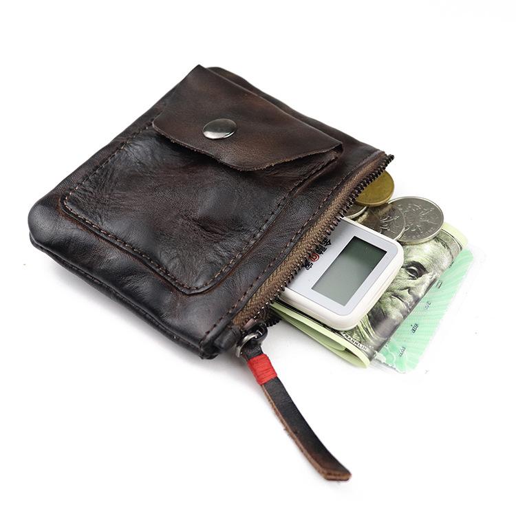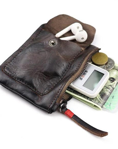 Design: Vintage Brown Leather Men's Coin Wallet Black Small billfold Wallet For Men