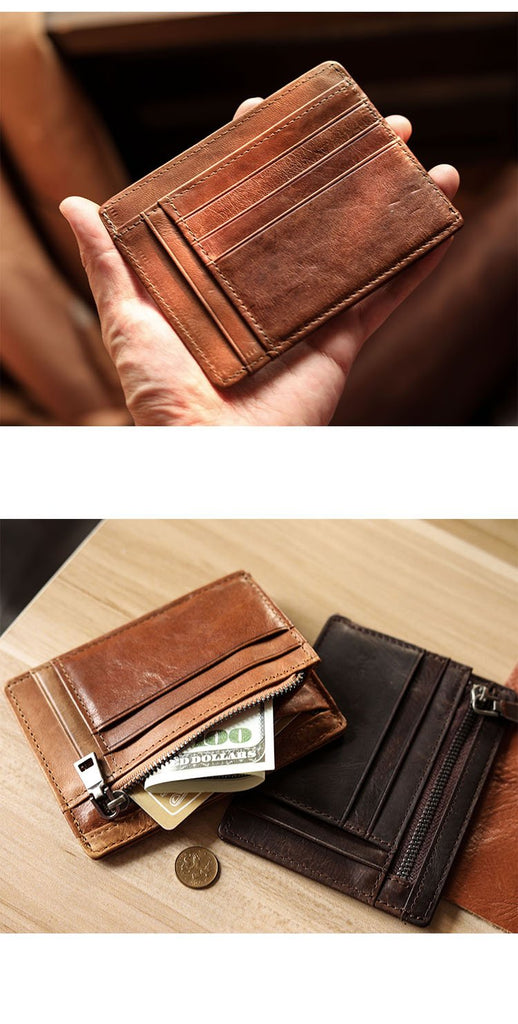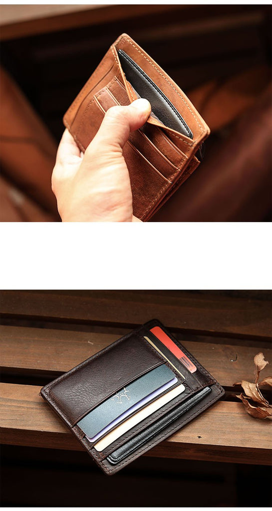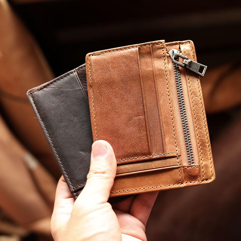 Design: Ultra Thin Leather Mens Front Pocket Wallet Slim billfold Wallet License Small Wallet For Men