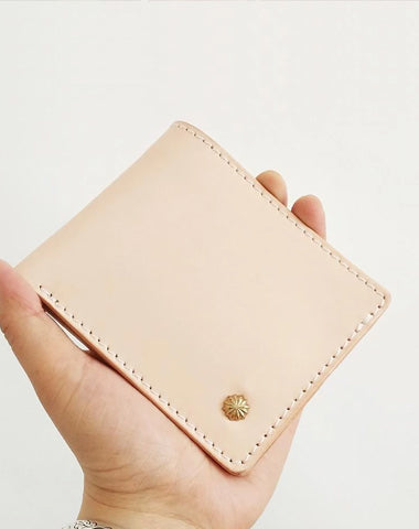 Design: Vintage Handmade Mens Leather Light Beige Chain Wallet Cool Small Bifold Wallets with Zippers