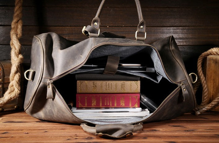 Design: Vintage Leather Mens Weekender Bag Travel Bag Duffle Bag