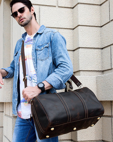 Style: Vintage Leather Mens Weekender Bag Travel Bag Duffle Bag