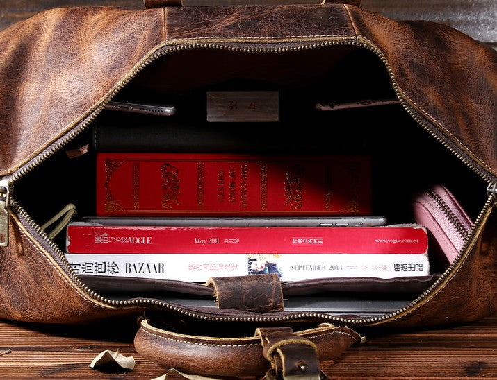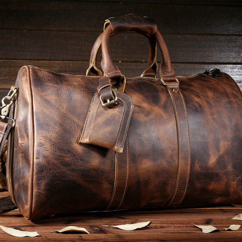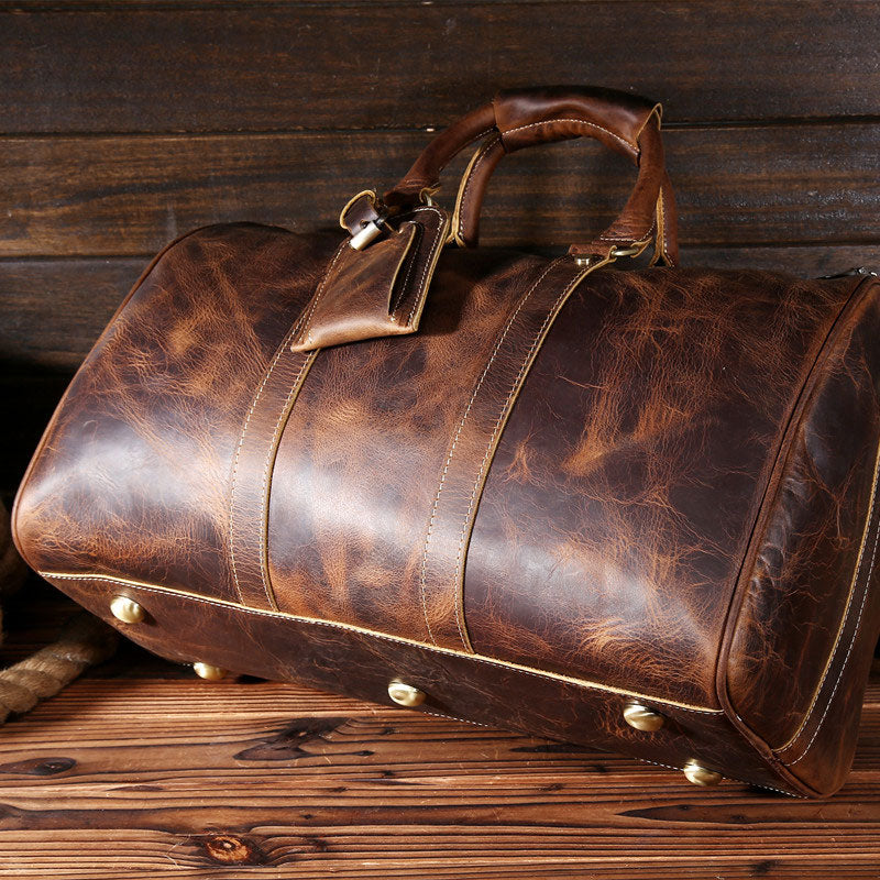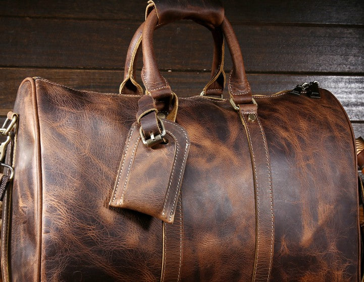 Design: Vintage Leather Mens Weekender Bag Travel Bag Duffle Bag