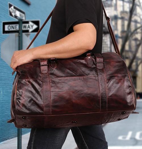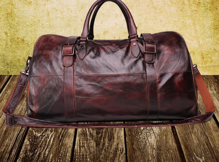 Design: Vintage Leather Mens Weekender Bag Travel Bag Duffle Bag