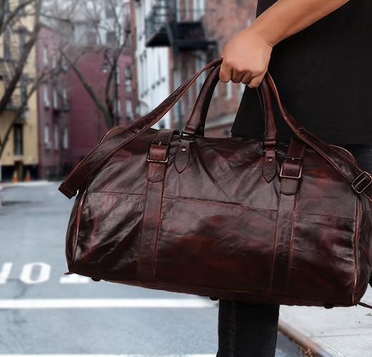 Style: Vintage Leather Mens Weekender Bag Travel Bag Duffle Bag