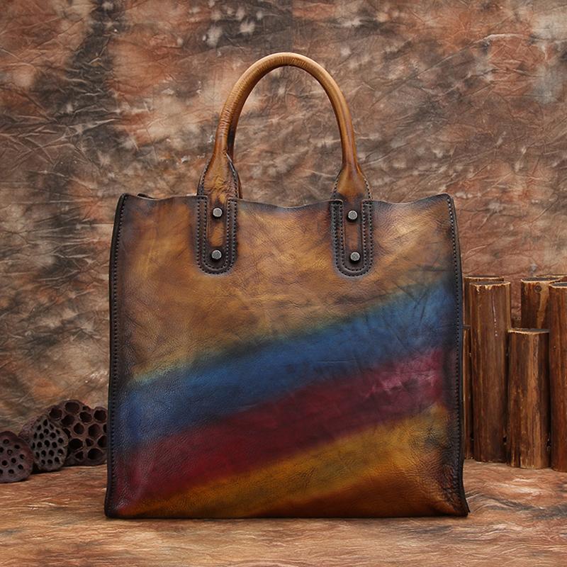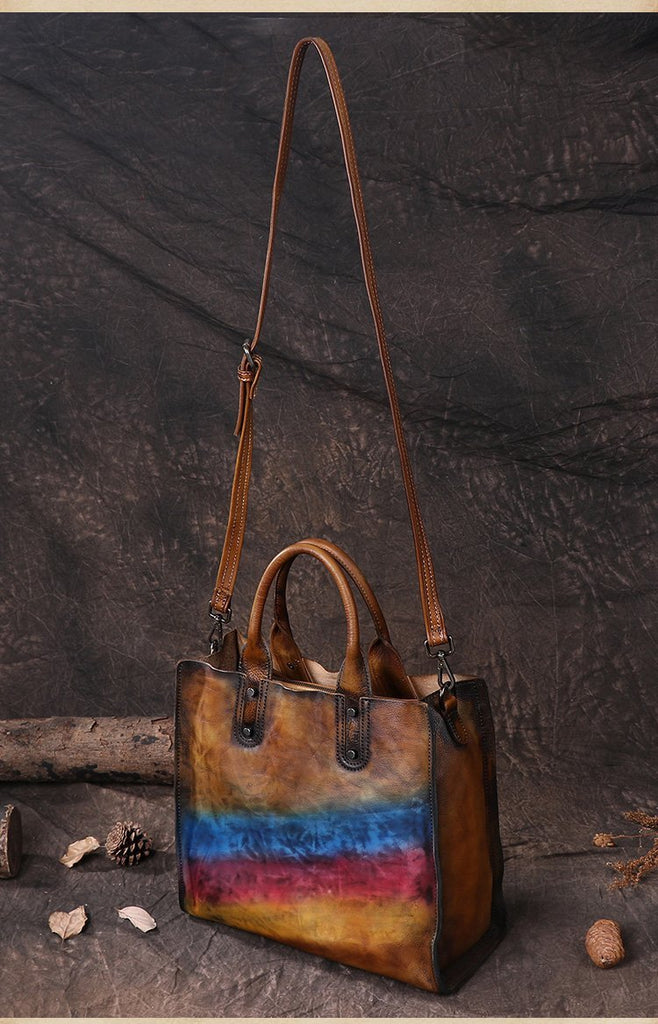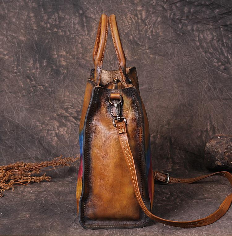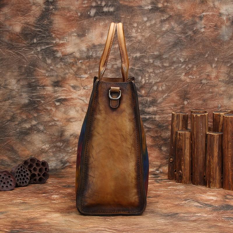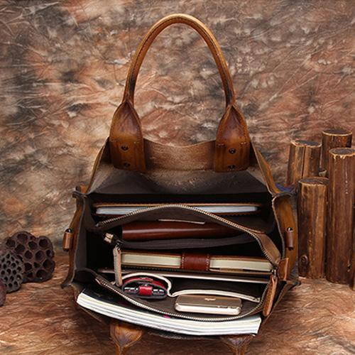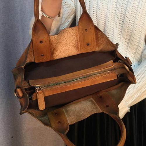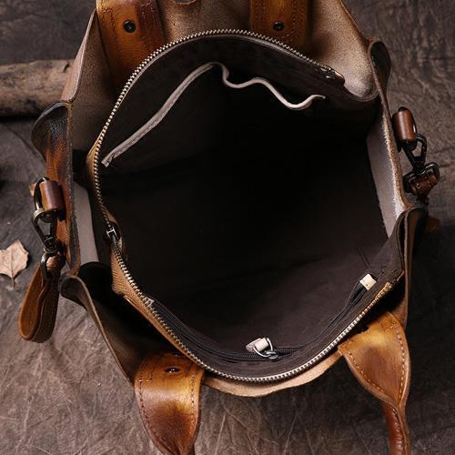 Vintage Womens Tan Leather Handbags Shopper Handbag Women's Tote Shoulder Purse