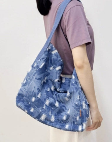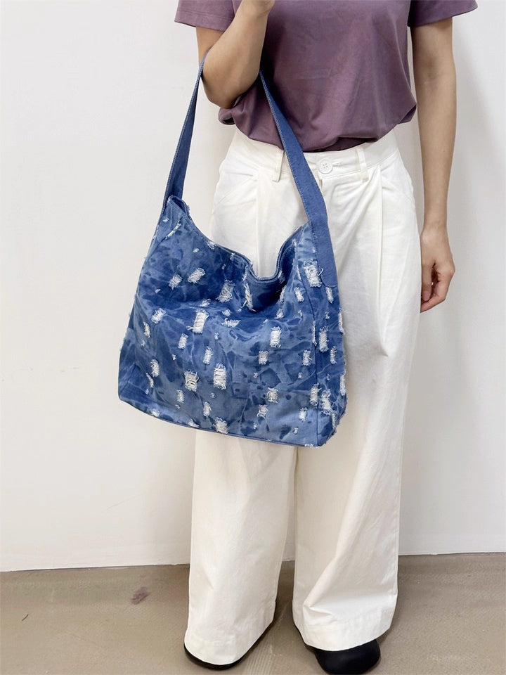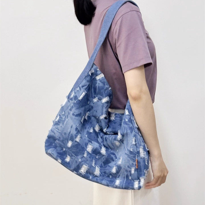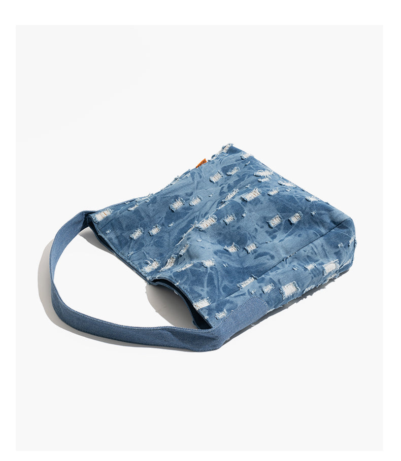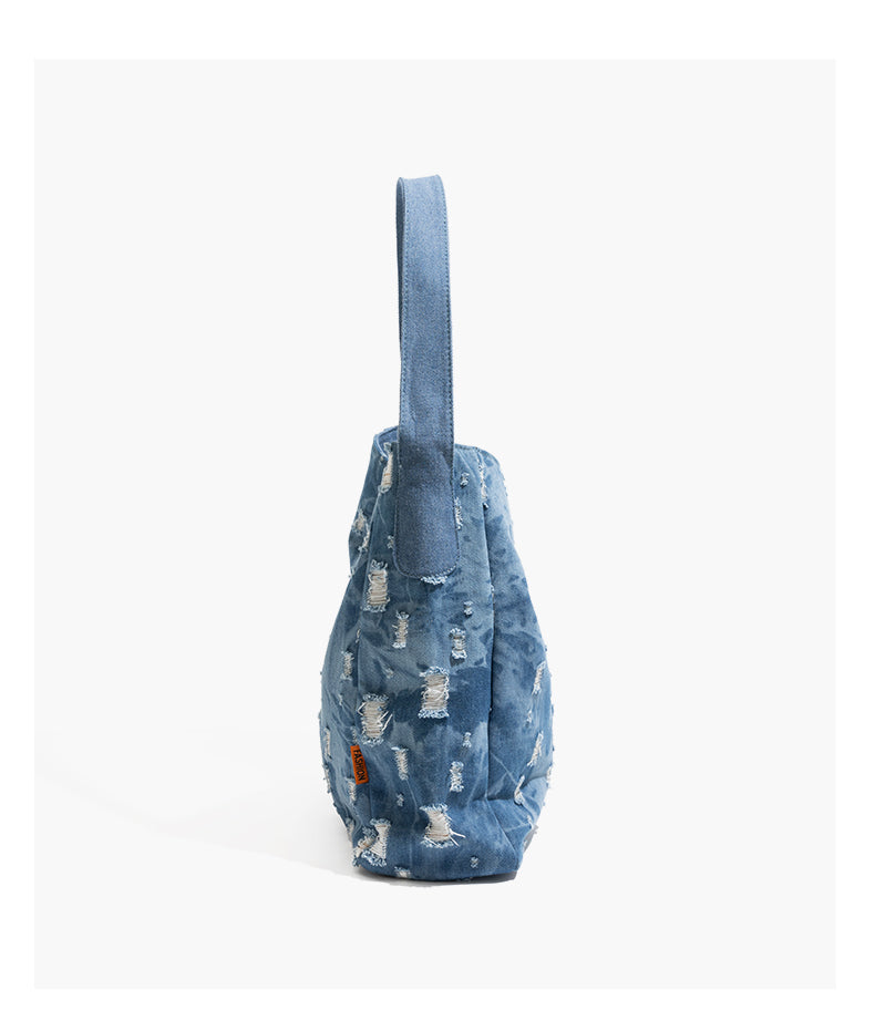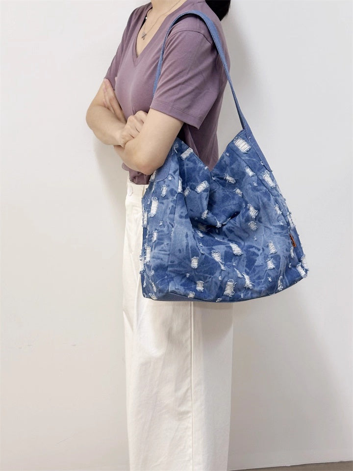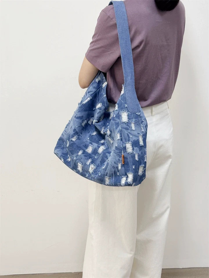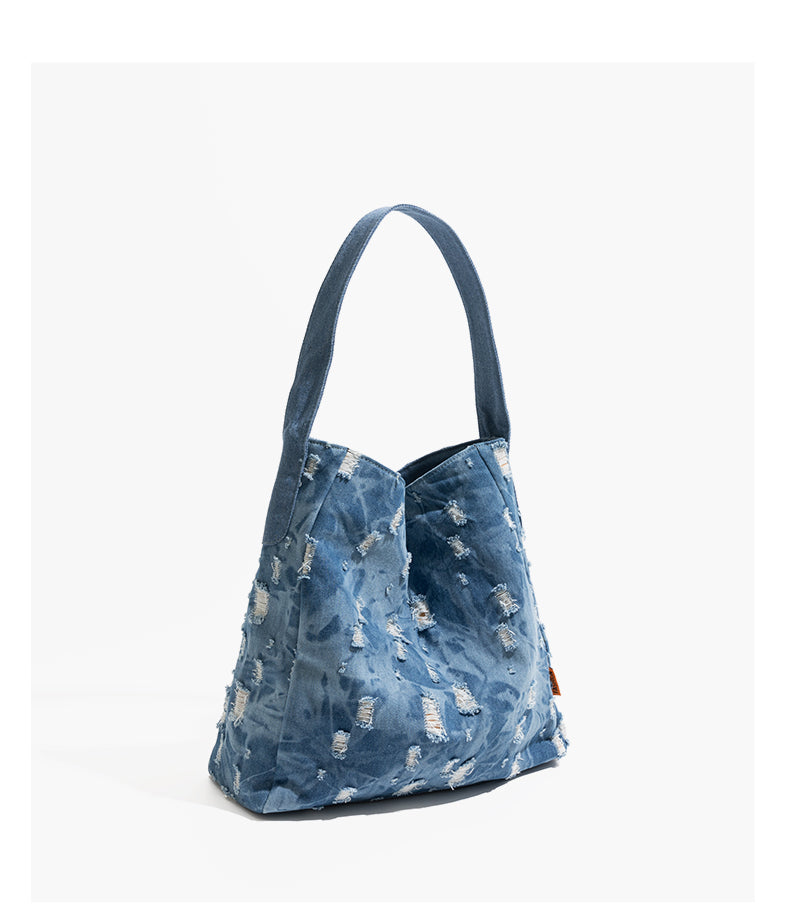 Design: Washed Denim Shoulder Bags Blue Jean Bag Large Denim Tote Bucket Bag Jean Tote Bag