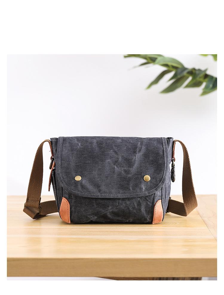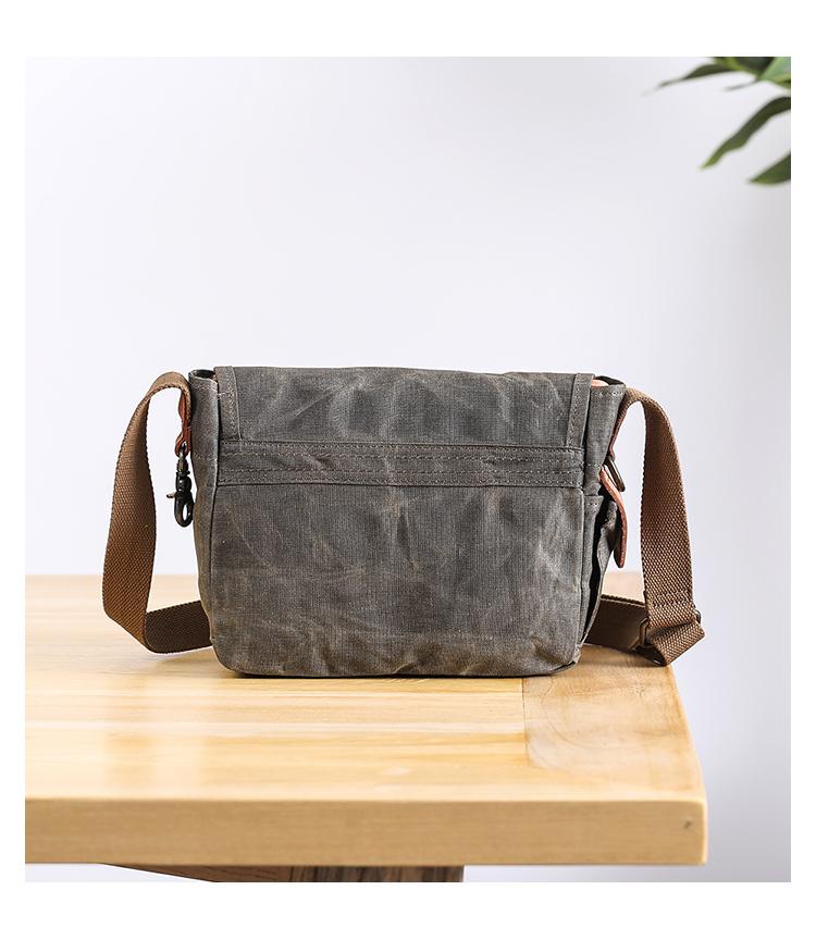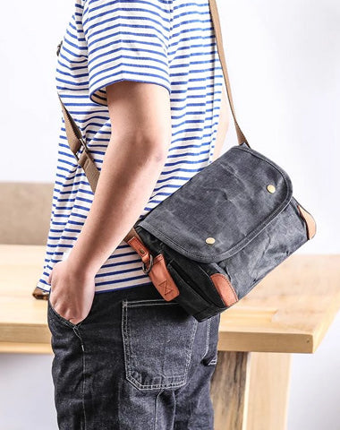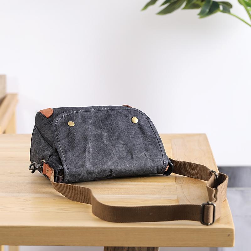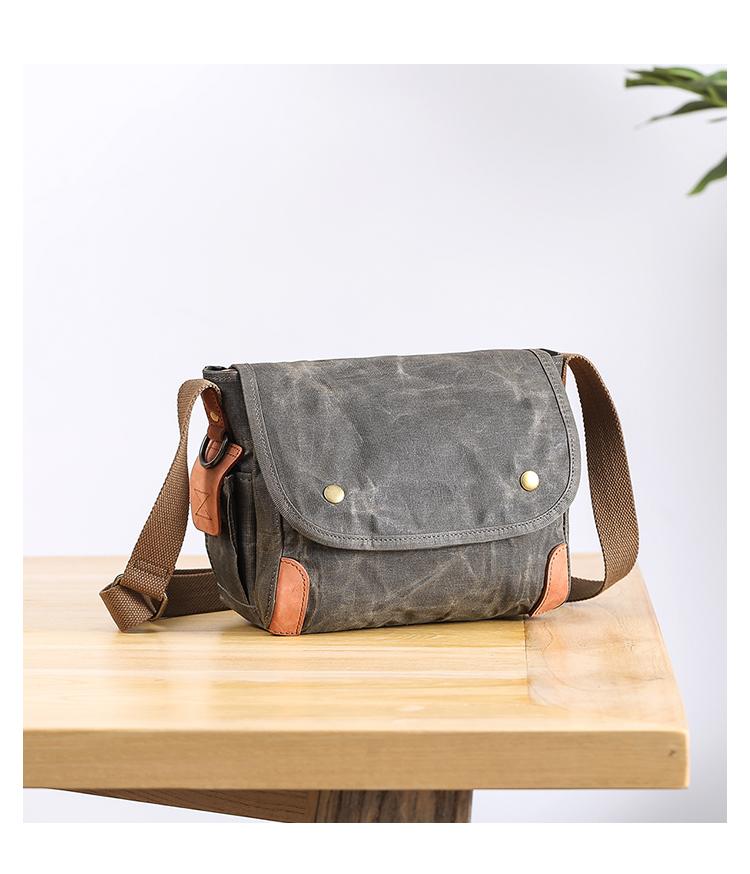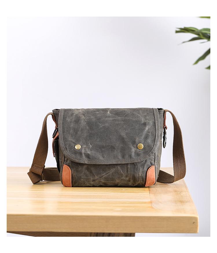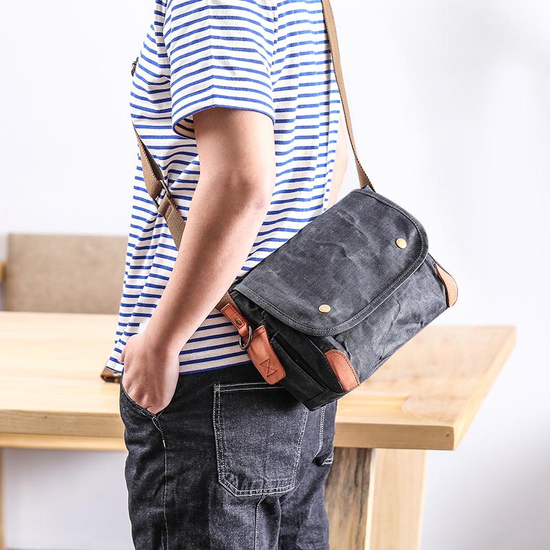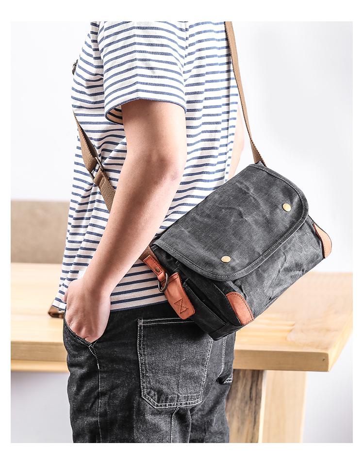 Design: Wax Canvas Leather Mens Dark Gray Side Bag Courier Bag Khaki Messenger Bag for Men