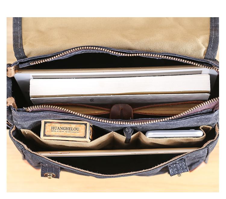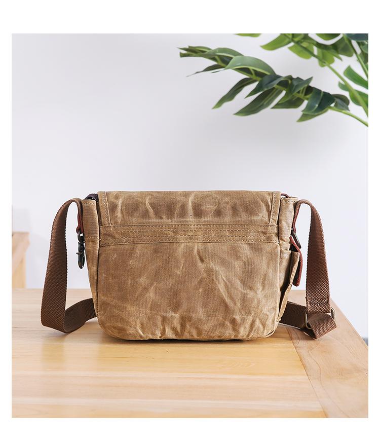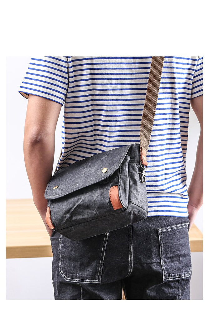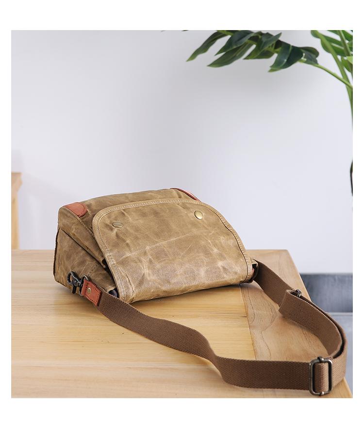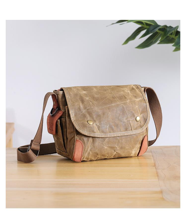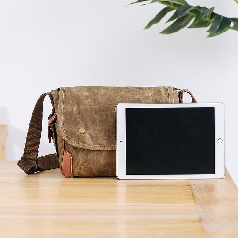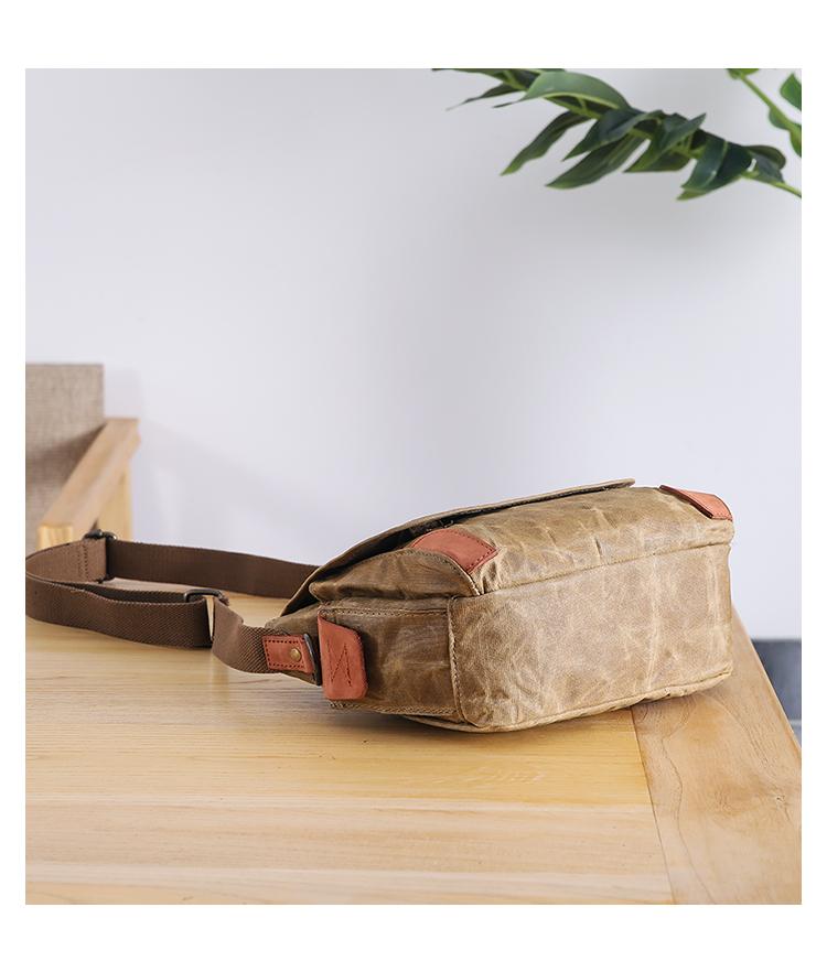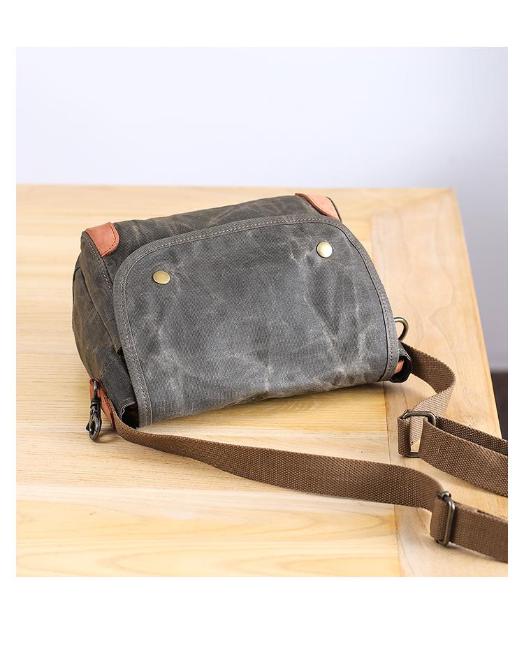 Design: Wax Canvas Leather Mens Dark Gray Side Bag Courier Bag Khaki Messenger Bag for Men