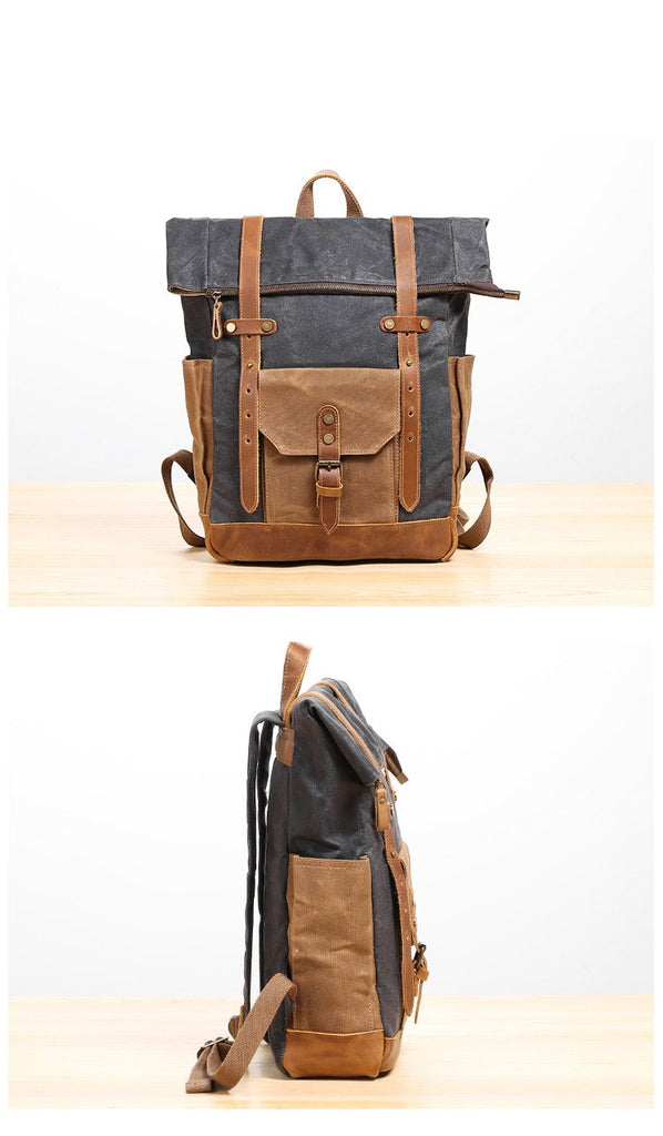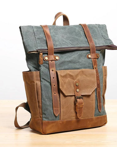 Style: Waxed Canvas Leather Mens 17‘’ Lake Green Backpack Khaki Travel Backpack Dark Gray Hiking Backpack for Men
