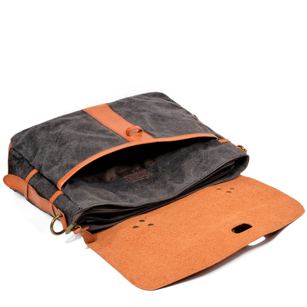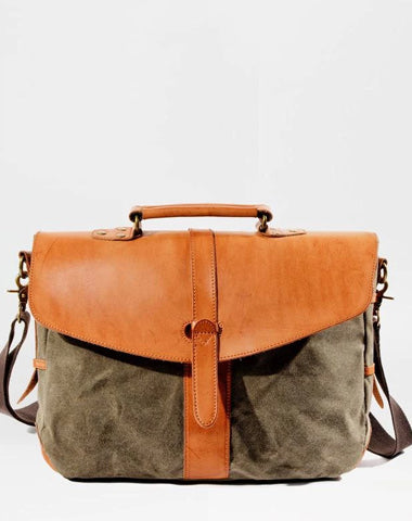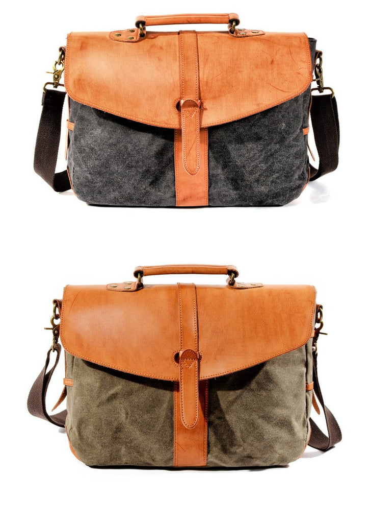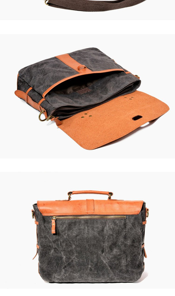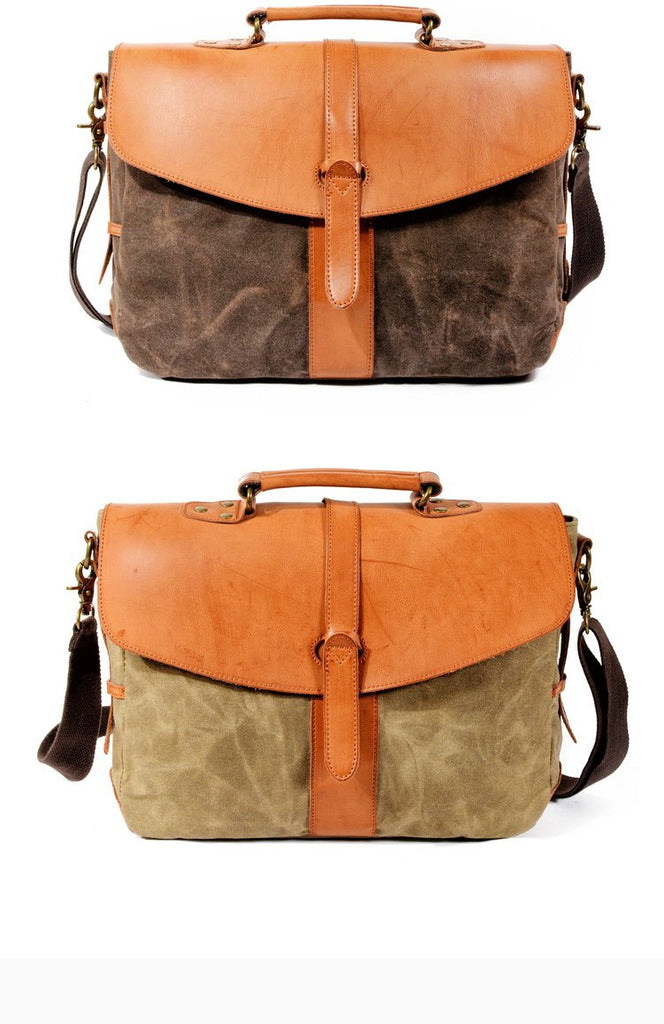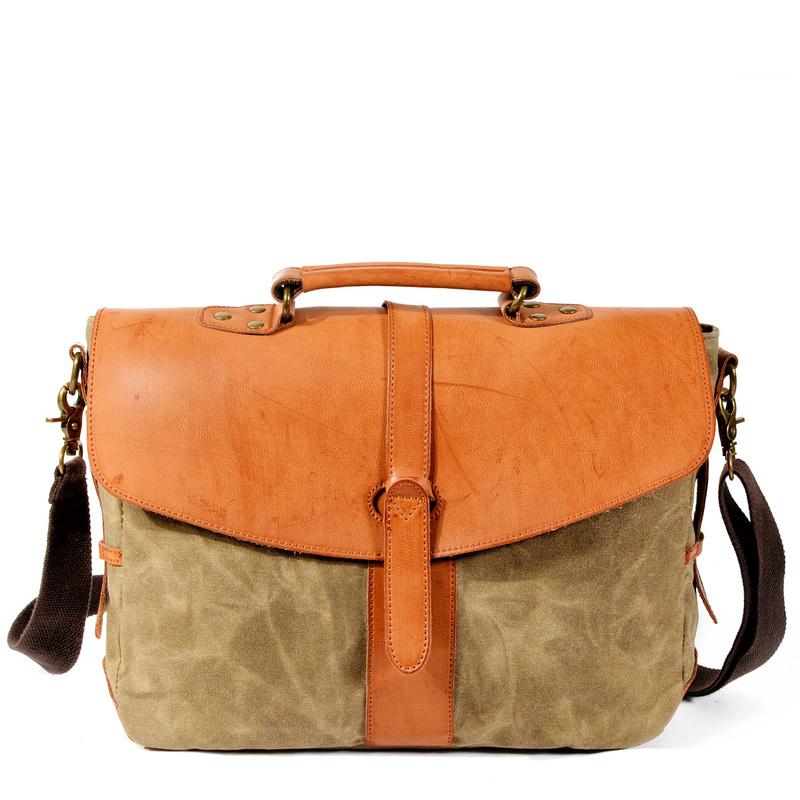 Style: Waxed Canvas Leather Mens Casual Briefcase Handbag Messenger Bag Side Bag Computer Bag For Men