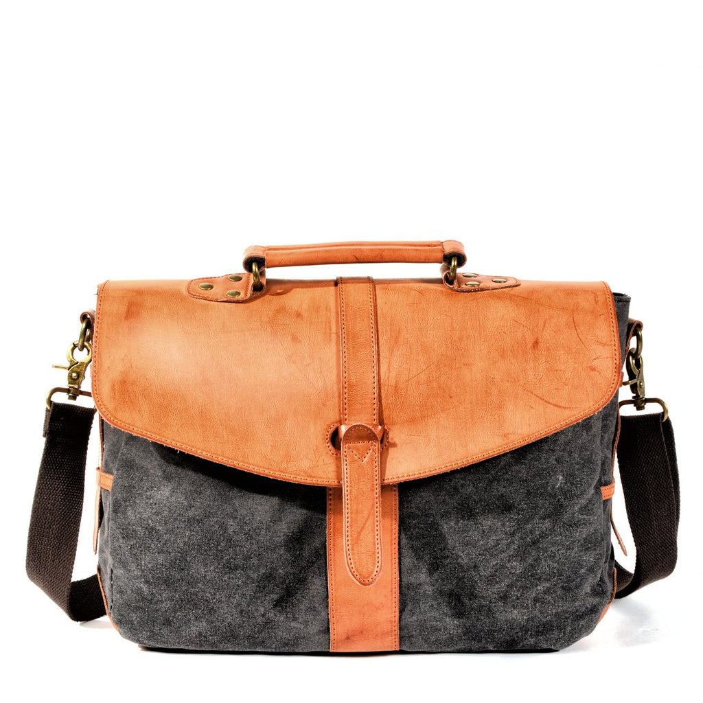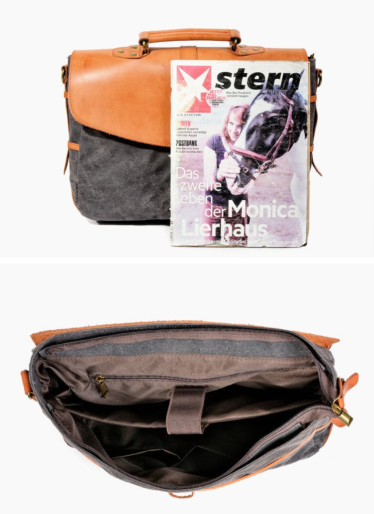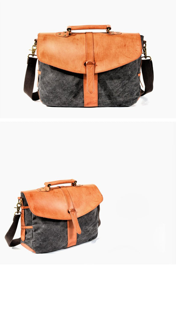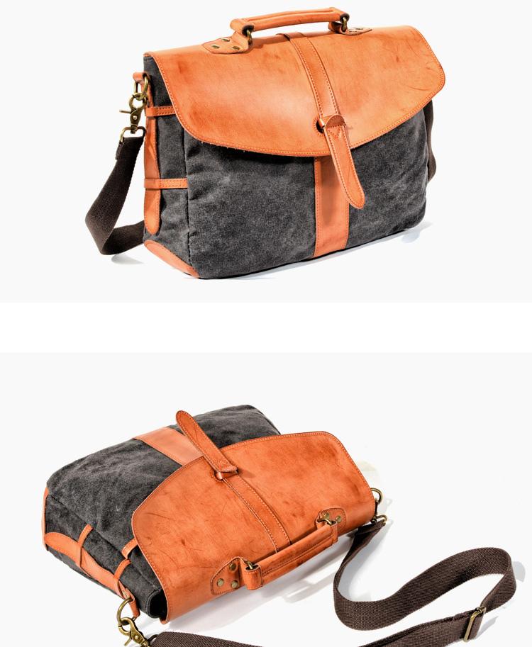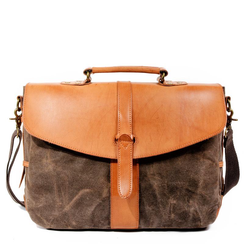 Design: Waxed Canvas Leather Mens Casual Briefcase Handbag Messenger Bag Side Bag Computer Bag For Men