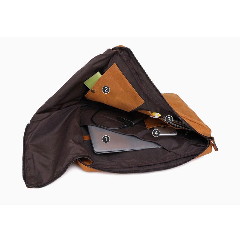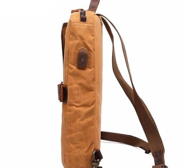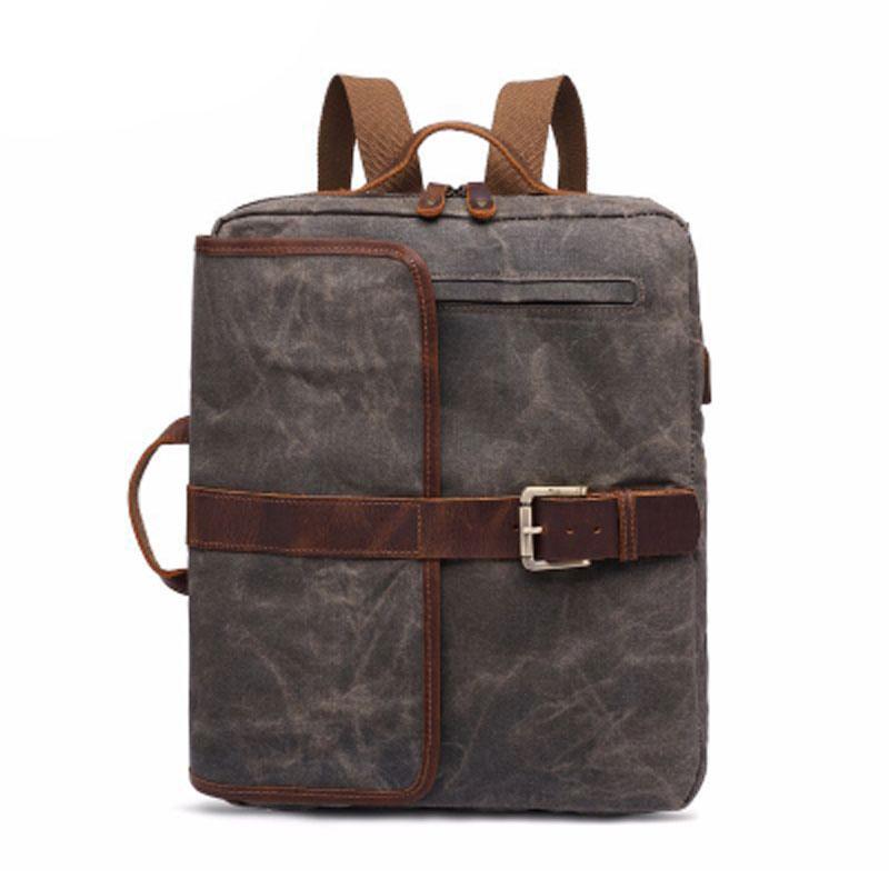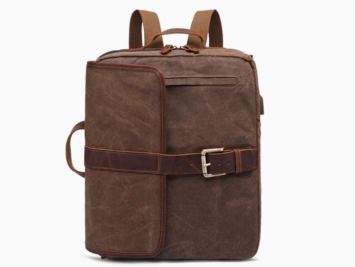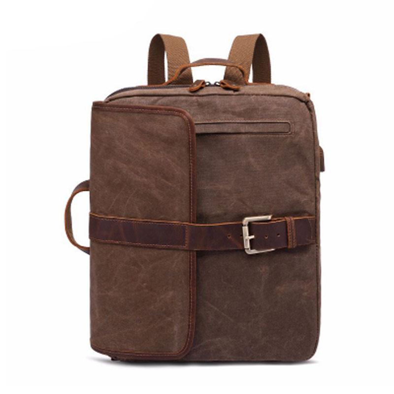 Design: Waxed Canvas Leather Mens Cool Backpack Canvas Handbag Canvas Shoulder Bag for Men