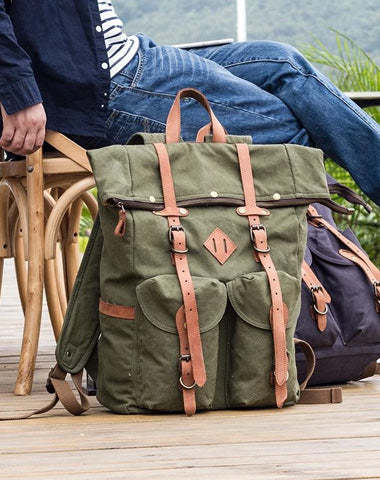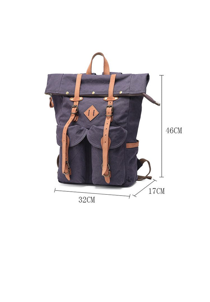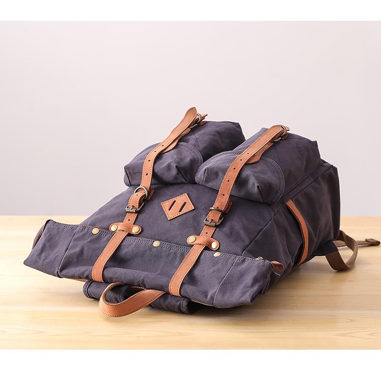 Style: Waxed Canvas Leather Mens Dark Gray Waterproof 15‘’ Large Backpack Travel Backpack College Backpack for Men