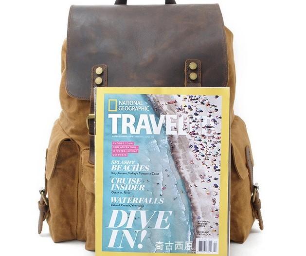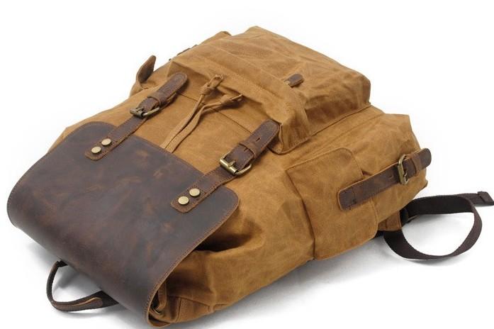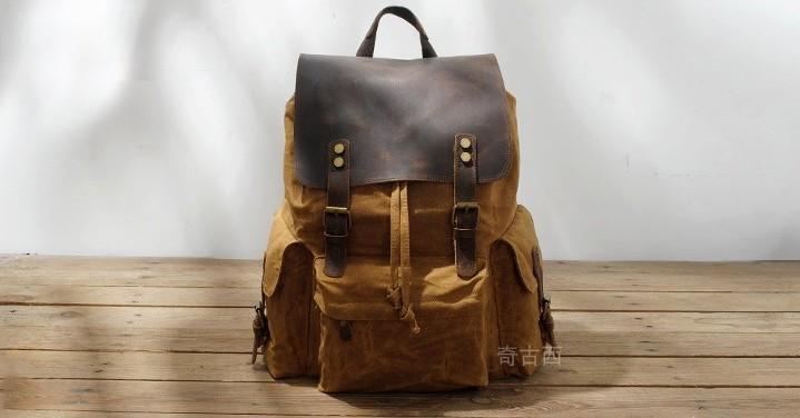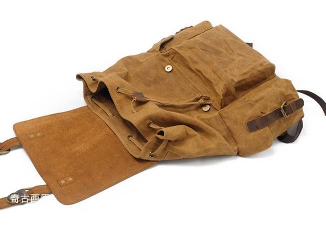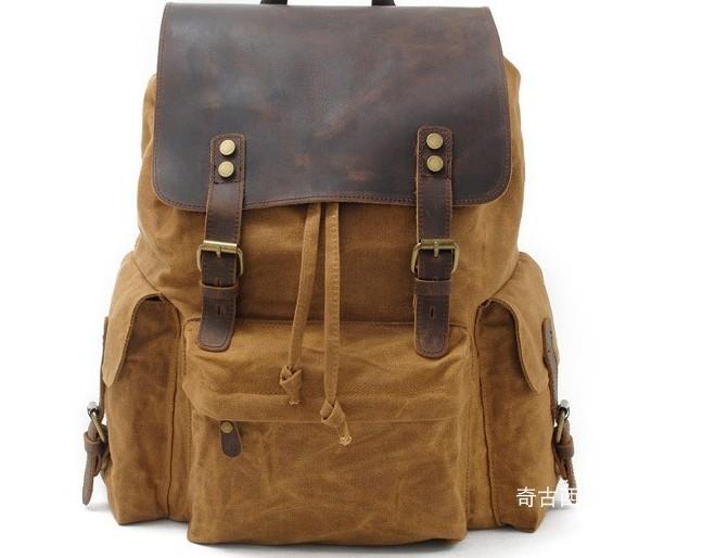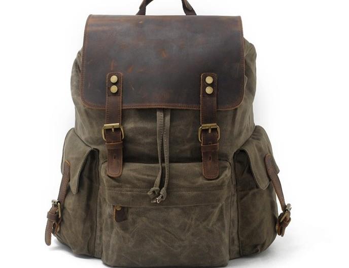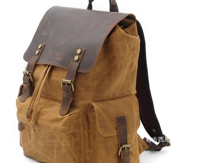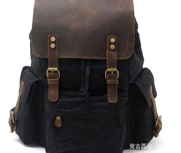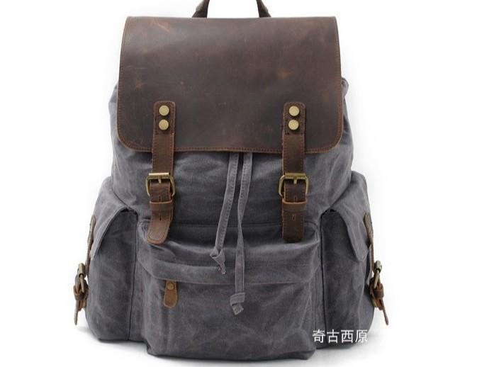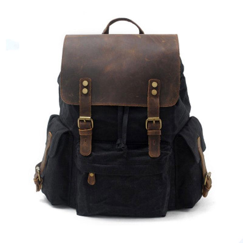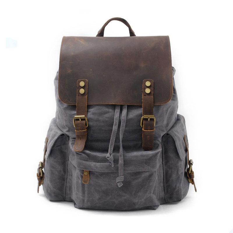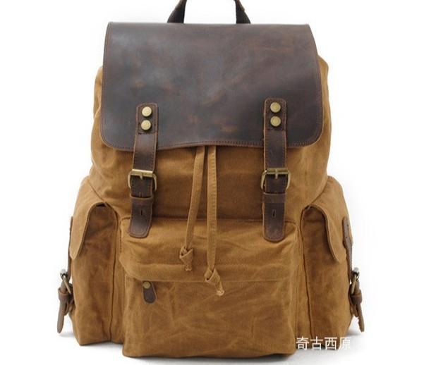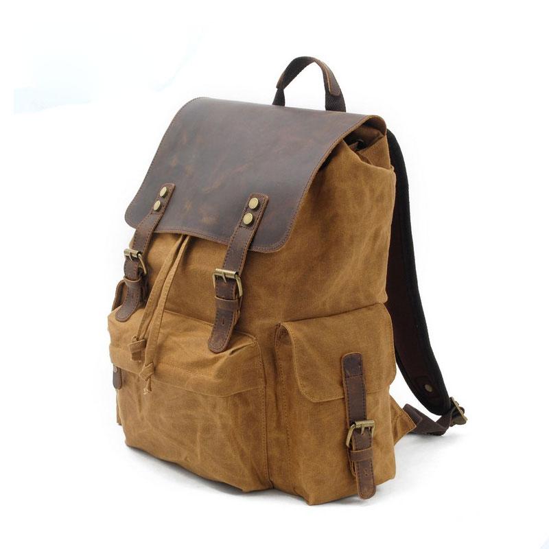 Design: Waxed Canvas Leather Mens Hiking Backpacks Canvas Travel Backpack School Backpack for Men