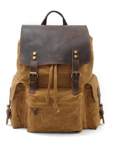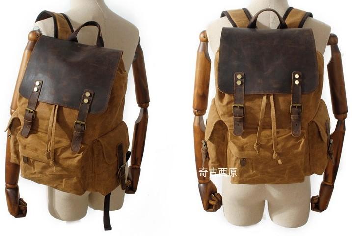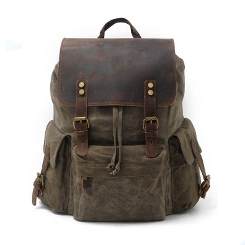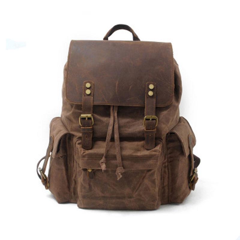 Style: Waxed Canvas Leather Mens Hiking Backpacks Canvas Travel Backpack School Backpack for Men
