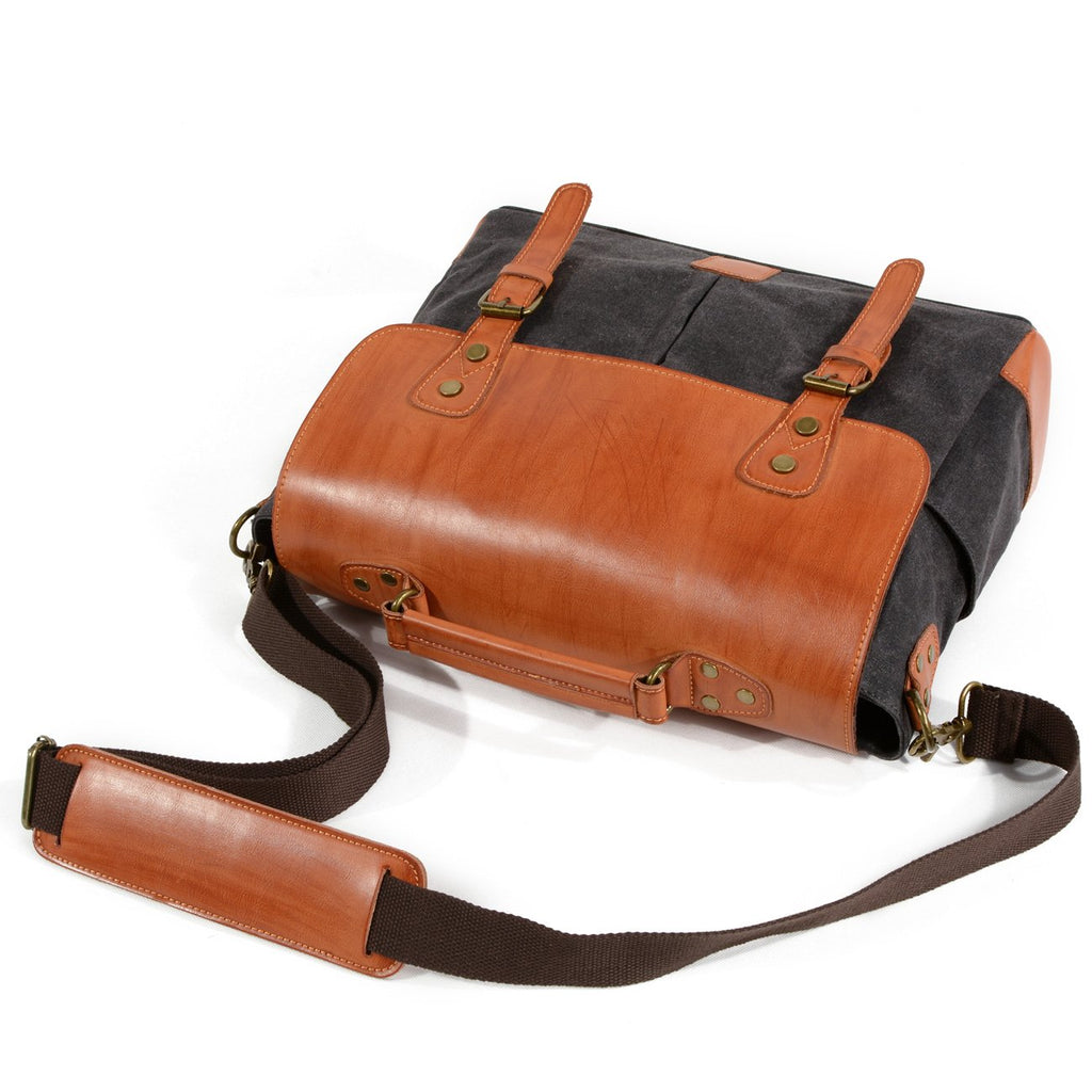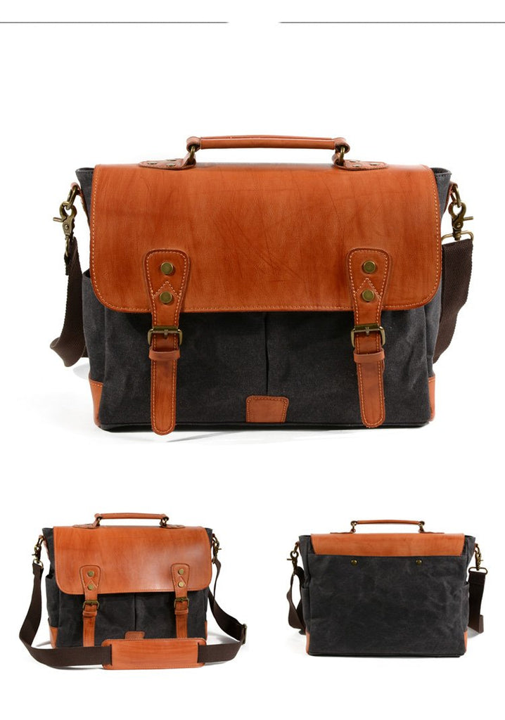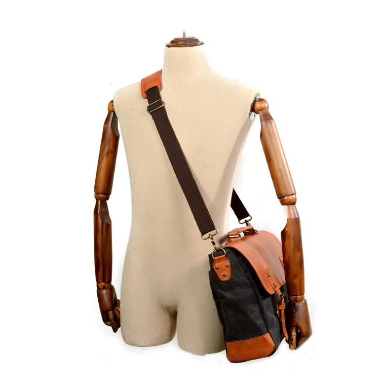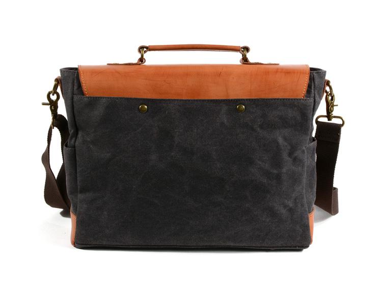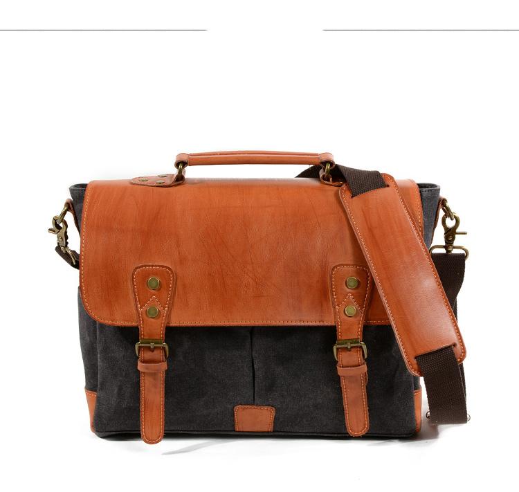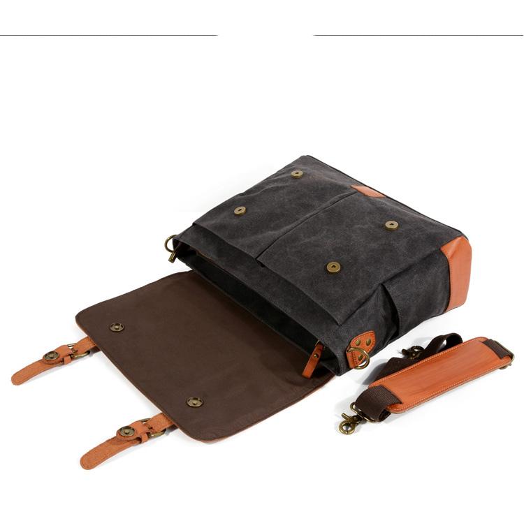 Design: Waxed Canvas Leather Mens Retro Multi-function Handbag Messenger Bag Computer Bag For Men