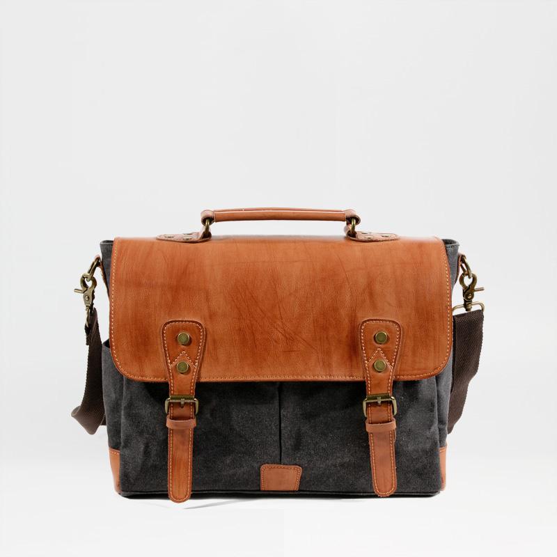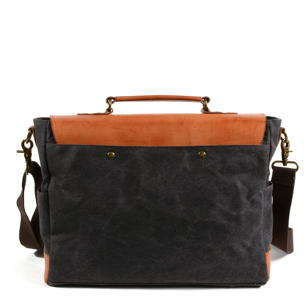 Style: Waxed Canvas Leather Mens Retro Multi-function Handbag Messenger Bag Computer Bag For Men