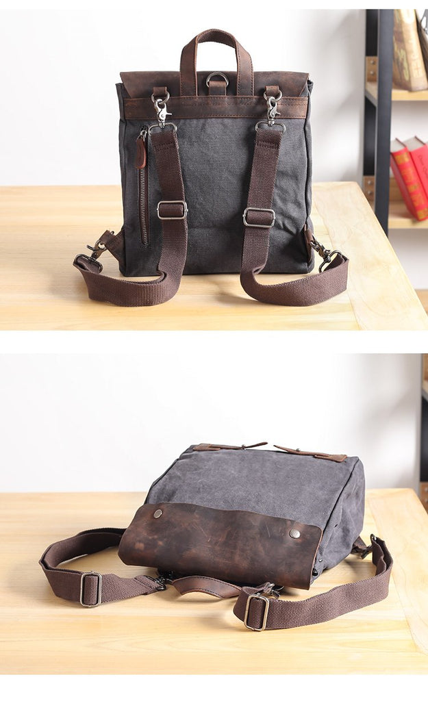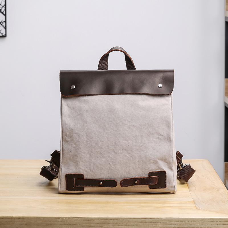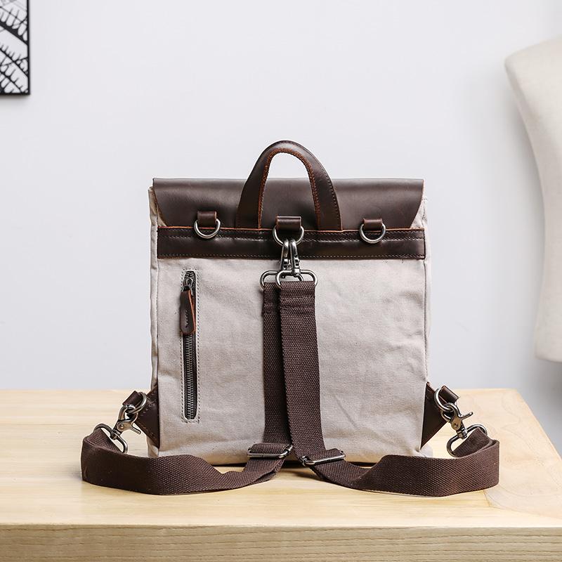Design: Waxed Canvas Leather Mens Small Shoulder Bag Travel Backpack College Backpack for Men