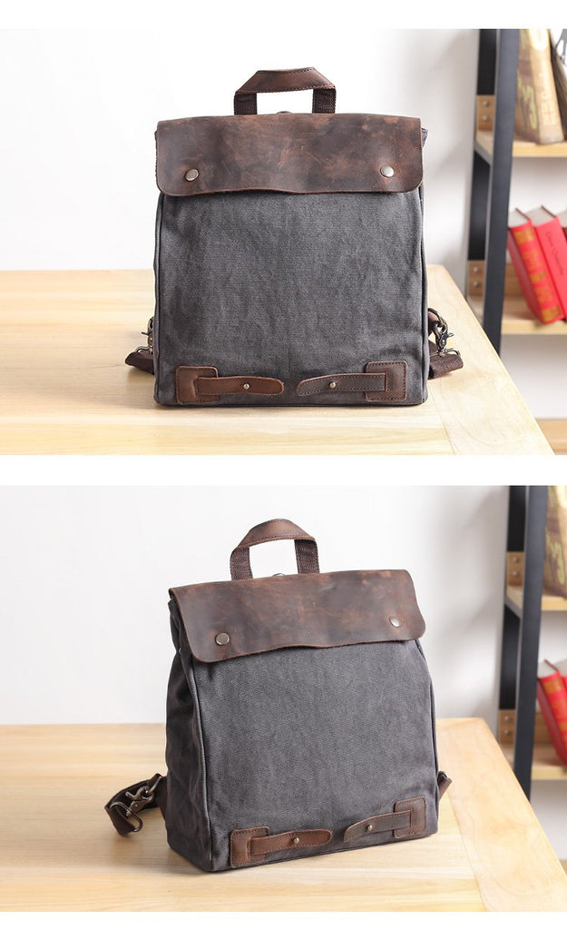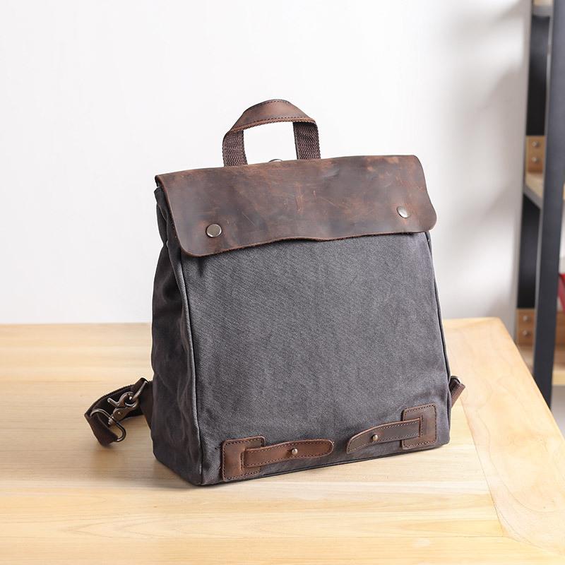 Style: Waxed Canvas Leather Mens Small Shoulder Bag Travel Backpack College Backpack for Men