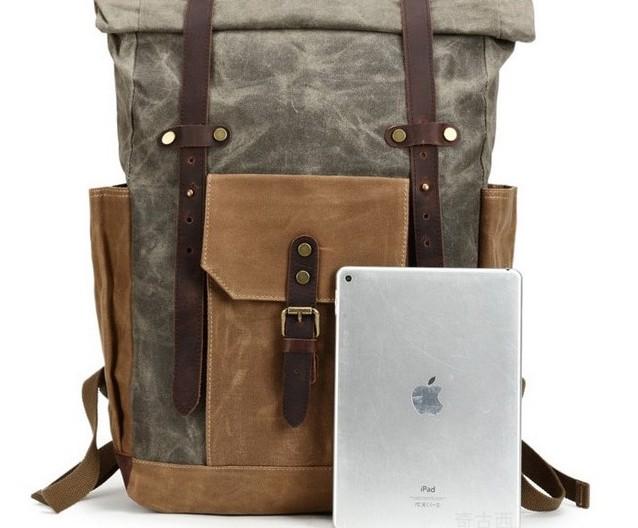 Design: Waxed Canvas Mens Backpacks Canvas Travel Backpack Canvas School Backpack for Men