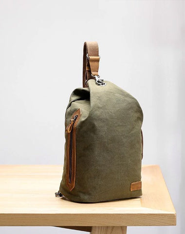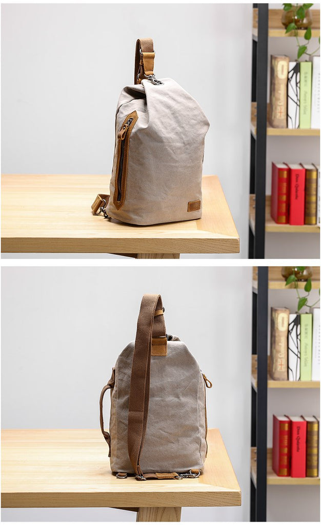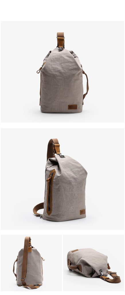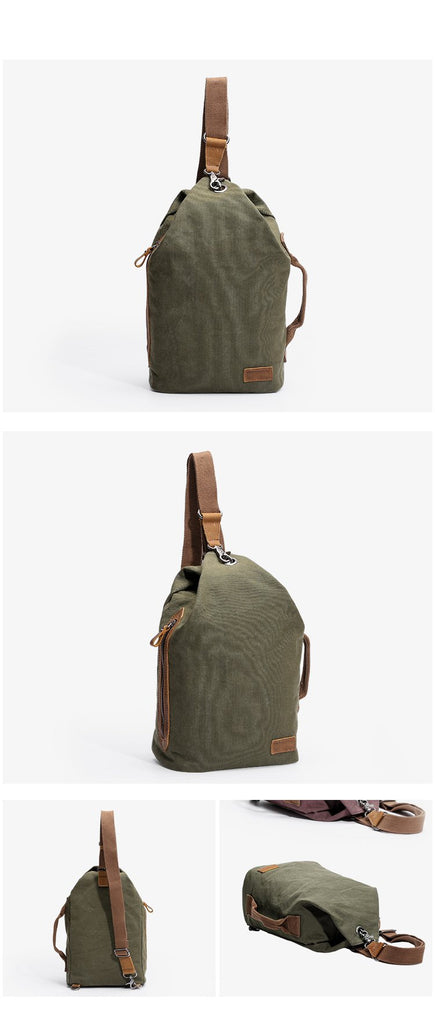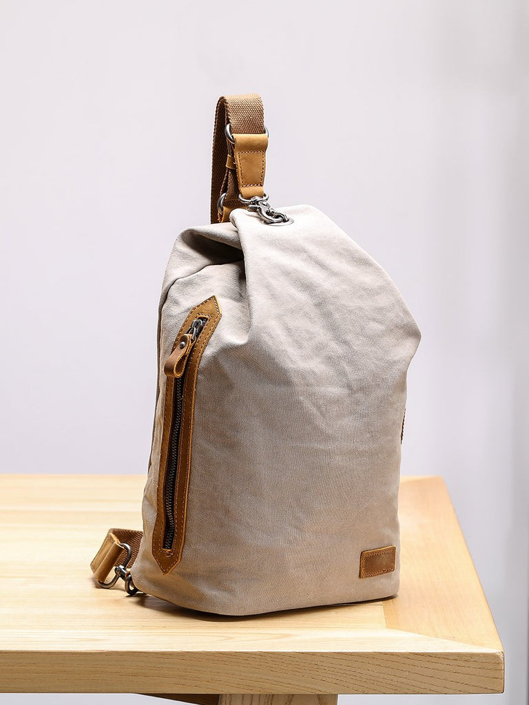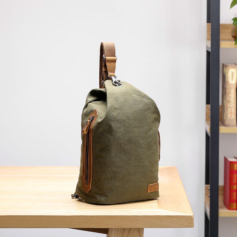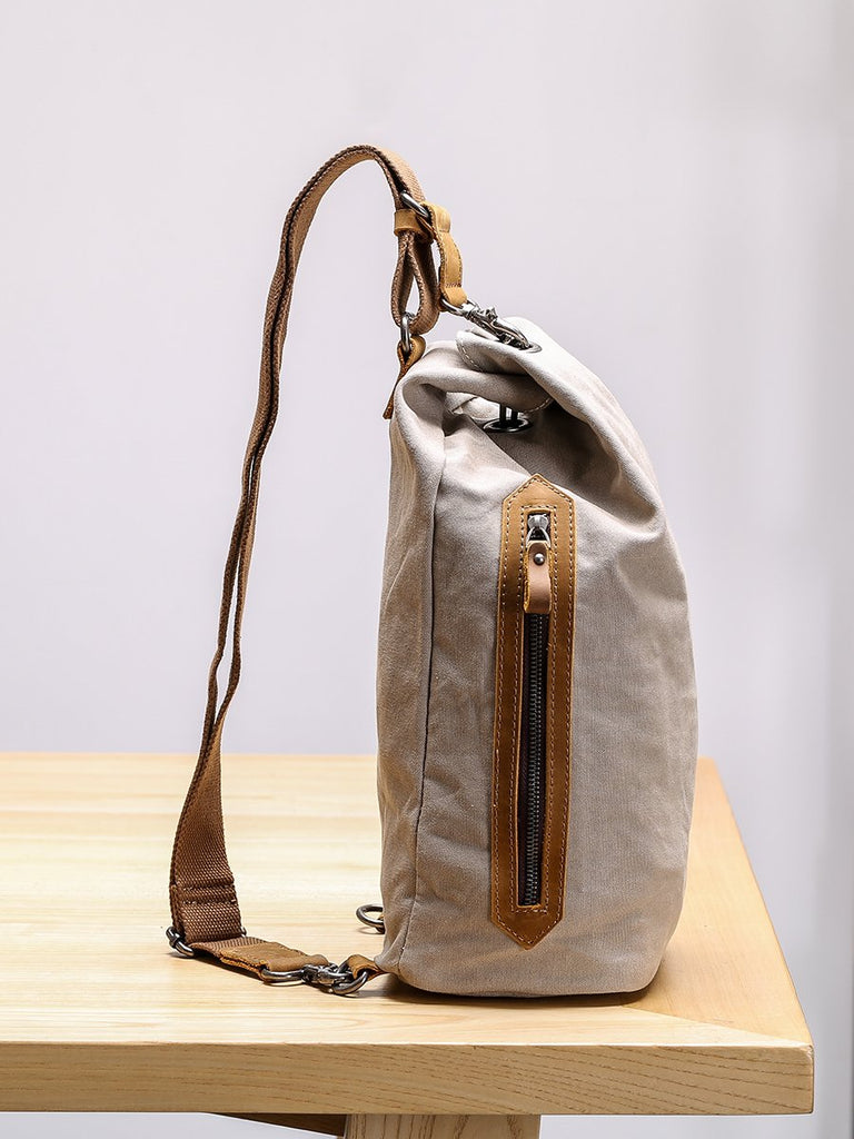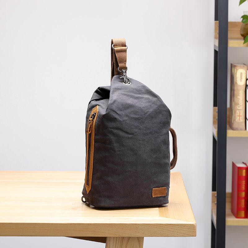 Design: Waxed Canvas Leather Mens Waterproof Chest Bag Bag Shoulder Bag Messenger Bag for Men