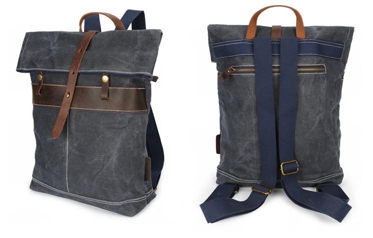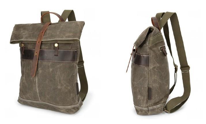 Style: Leather Canvas Mens Cool Backpack Canvas Travel Bag Canvas School Bag for Men