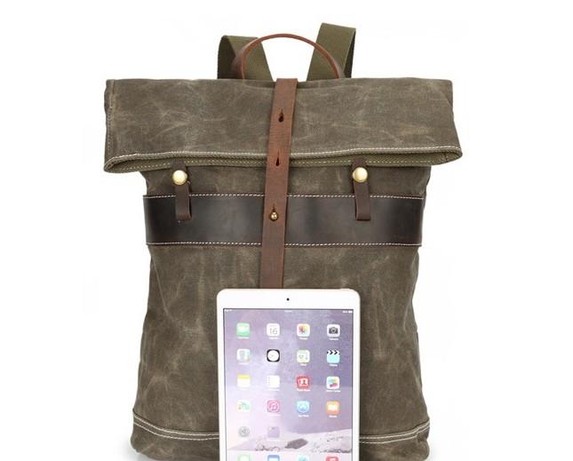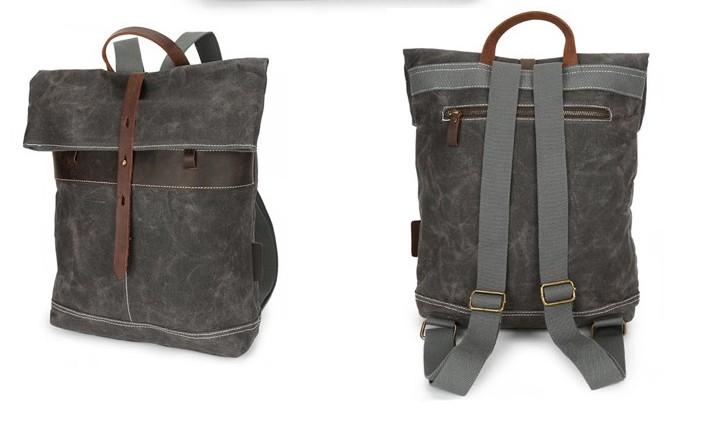 Design: Leather Canvas Mens Cool Backpack Canvas Travel Bag Canvas School Bag for Men