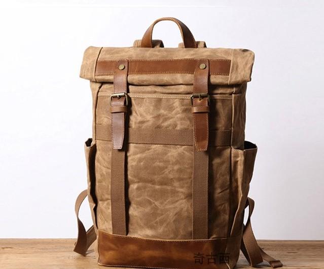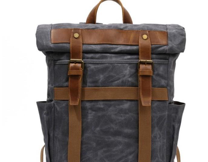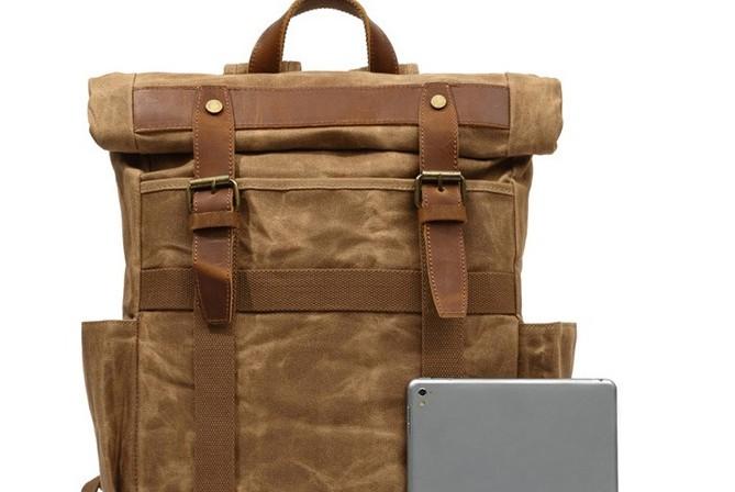 Design: Waxed Canvas Mens Travel Backpack Canvas School Backpack Laptop Backpack for Men