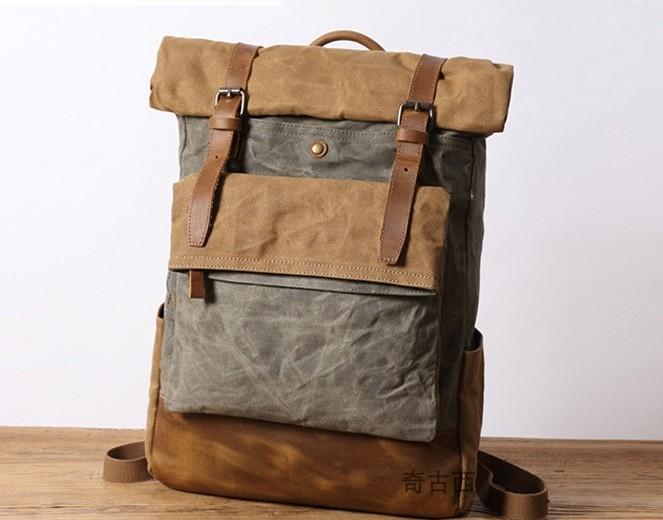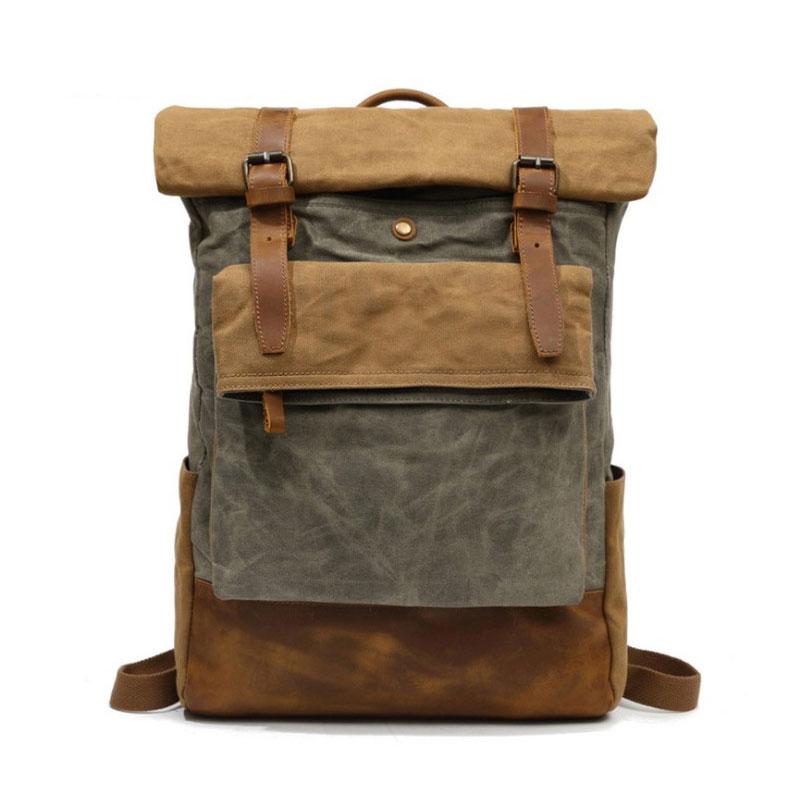 Design: Waxed Canvas Mens Travel Backpacks Canvas School Backpacks Laptop Backpack for Men