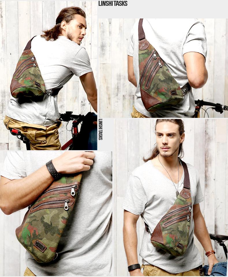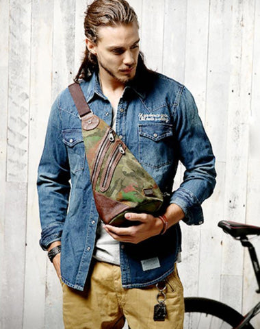 Design: Camouflage Canvas Sling Backpack Men's Sling Bag Camouflage Chest Bag Canvas One shoulder Backpack For Men