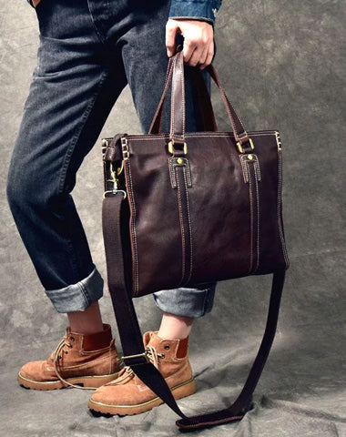 Design: Waxed Leather Mens 14" Dark Brown Laptop Briefcase Business Messenger Bag Brown Large Handbag For Men