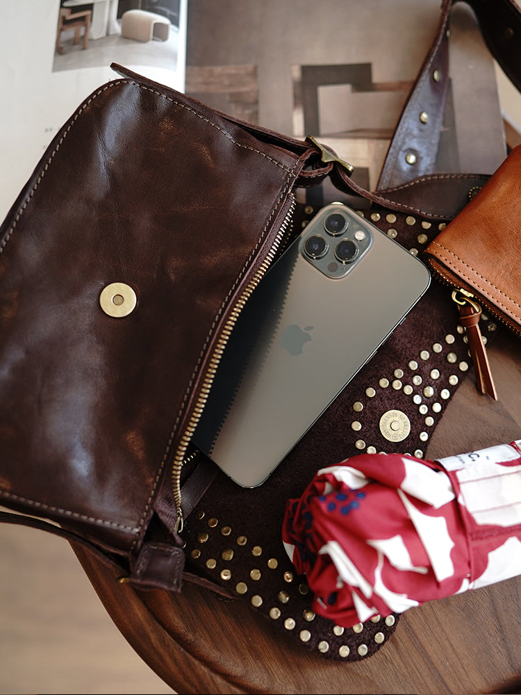Style: Vintage Womens Rivets Small Shoulder Bag Small Rivets Crossbody Purse for Ladies