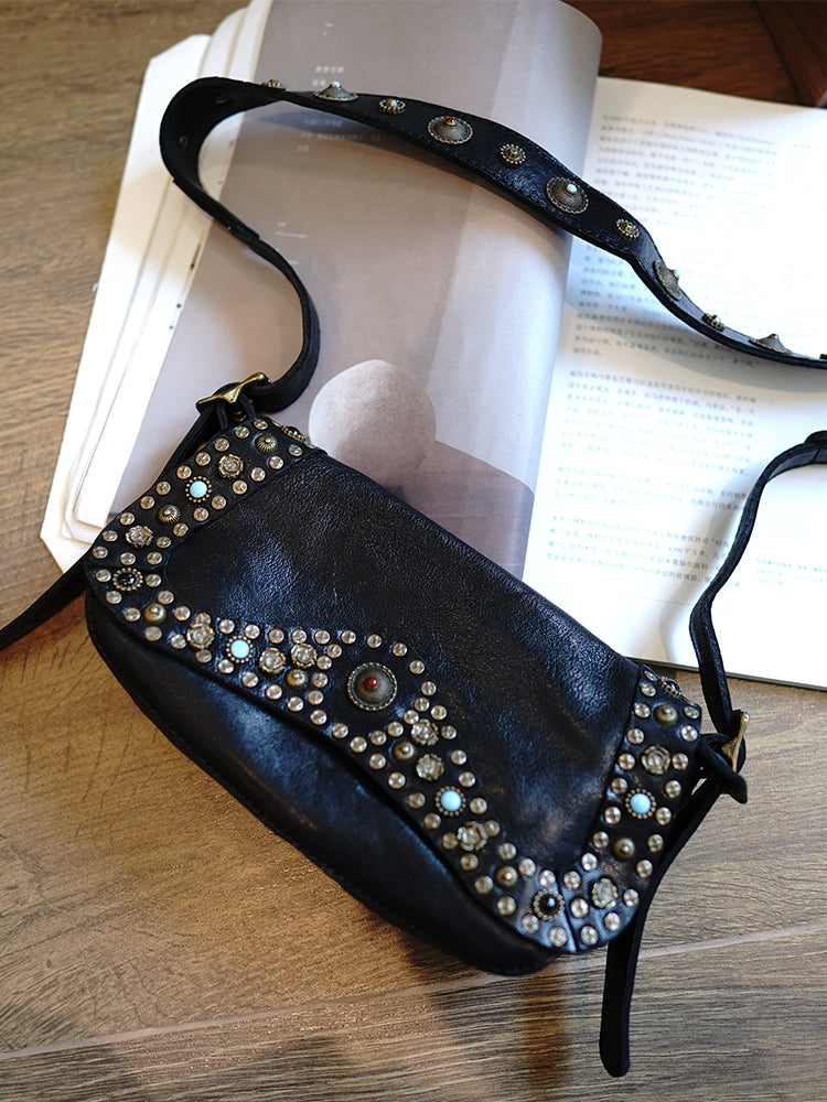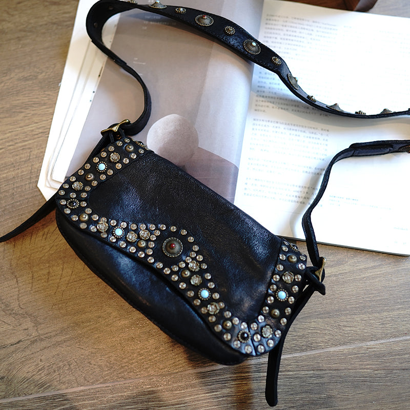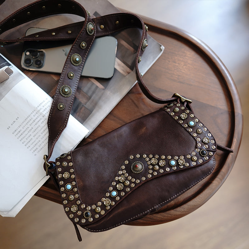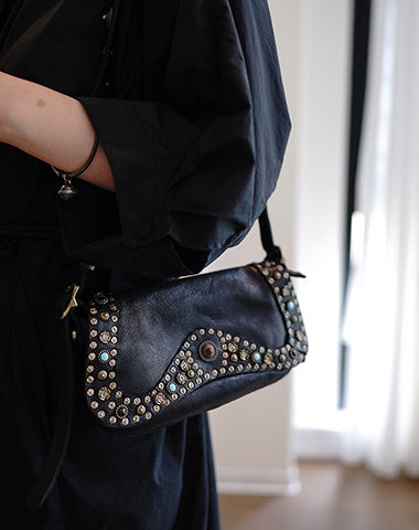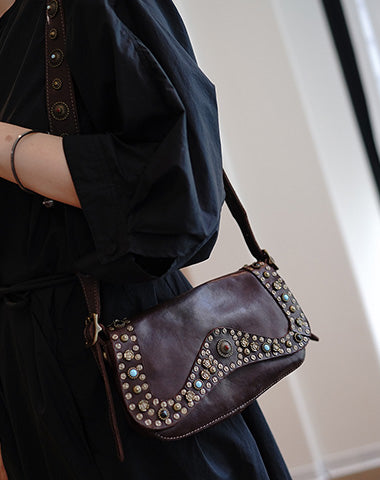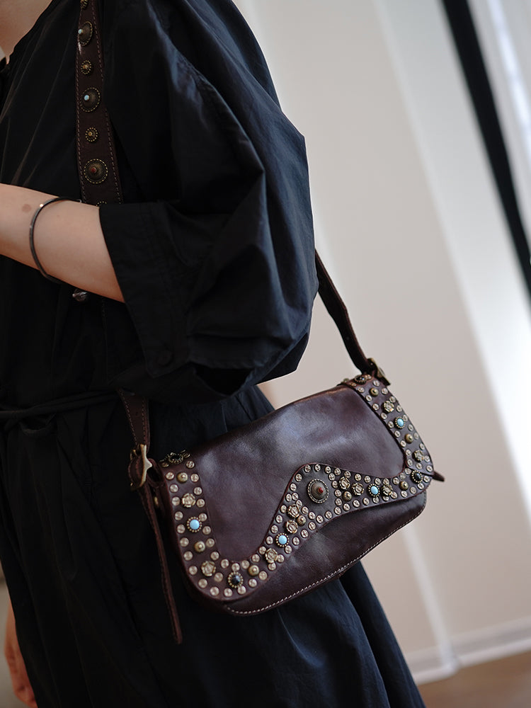 Design: Vintage Womens Rivets Small Shoulder Bag Small Rivets Crossbody Purse for Ladies
