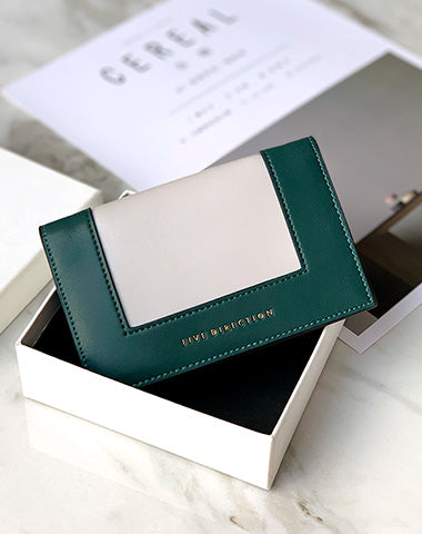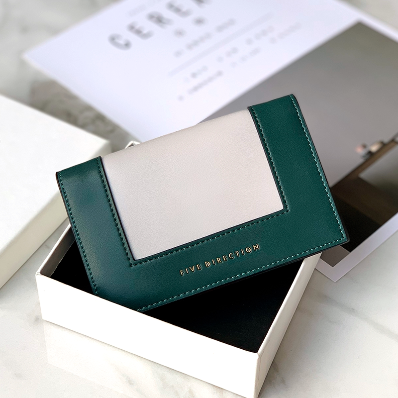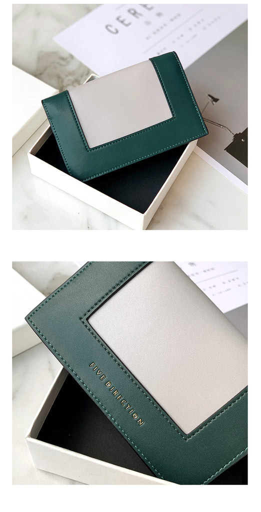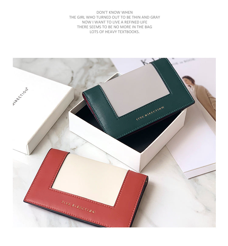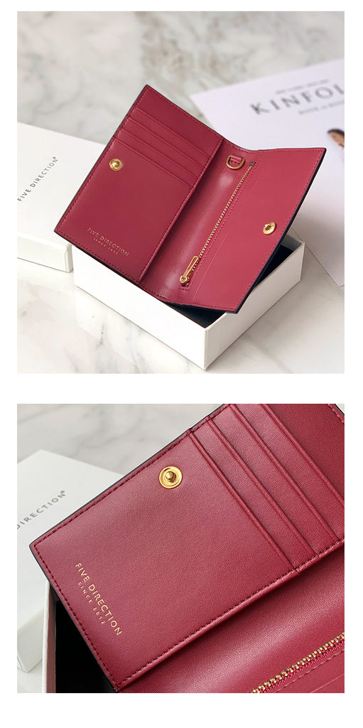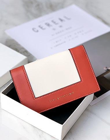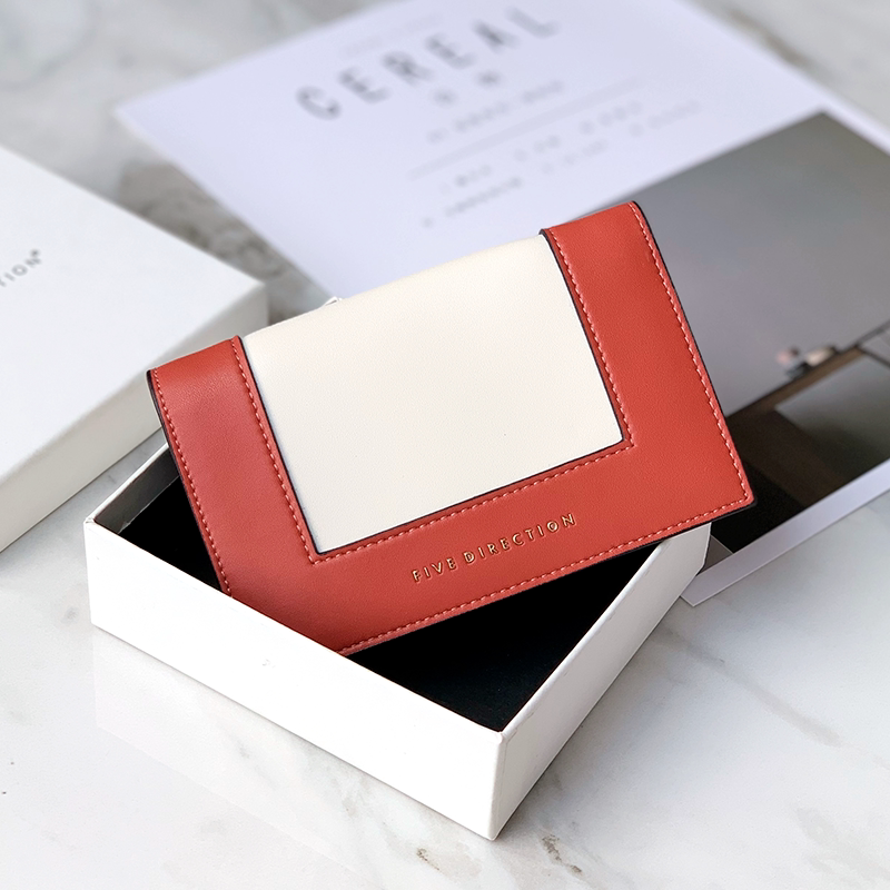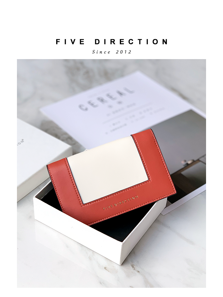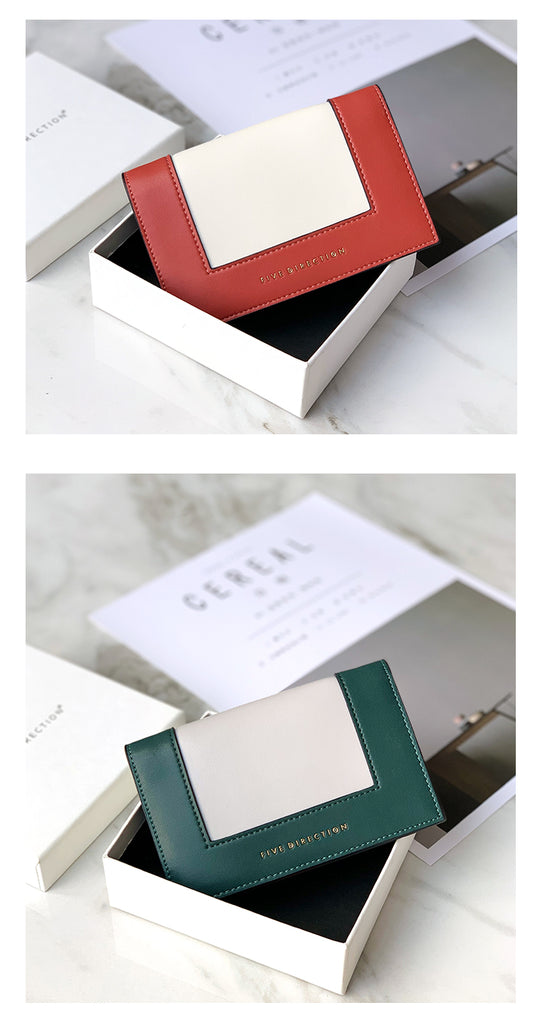 Style: Women Red Vegan Leather Small Card Wallet CONTRAST COLOR Coin Change Wallet For Women