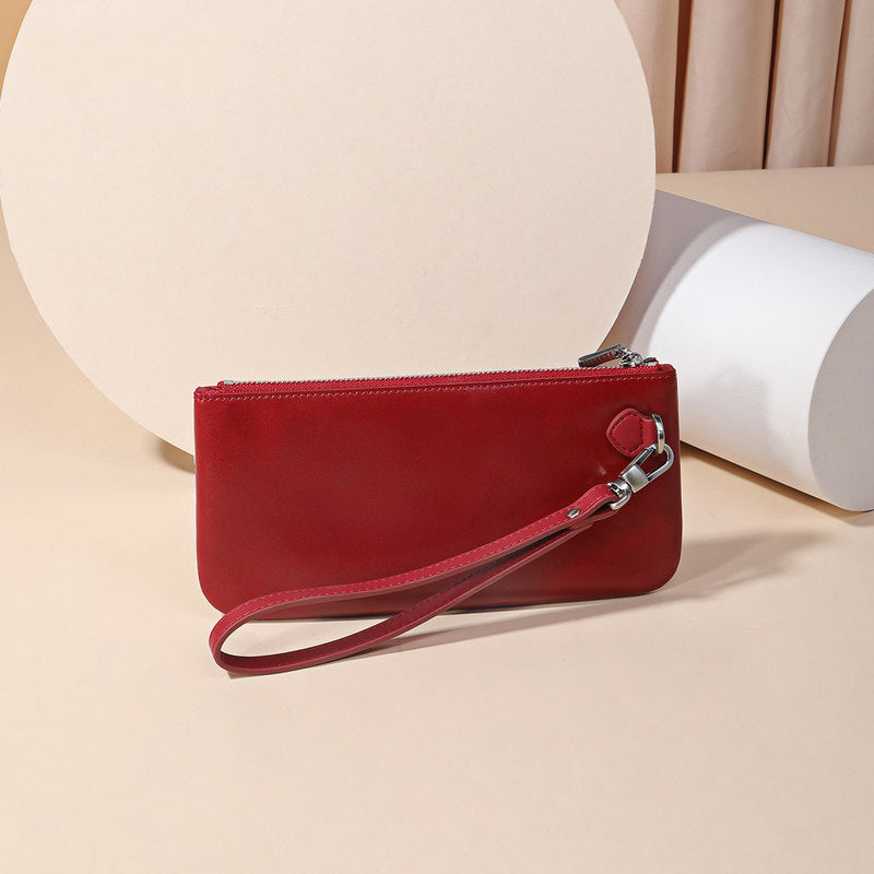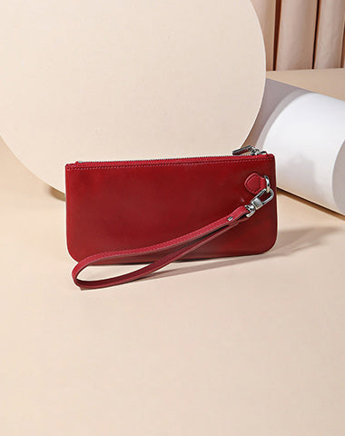 Style: Women Red Leather Wirstlet Wallet Zipper Clutch Red Phone Wallet For Women